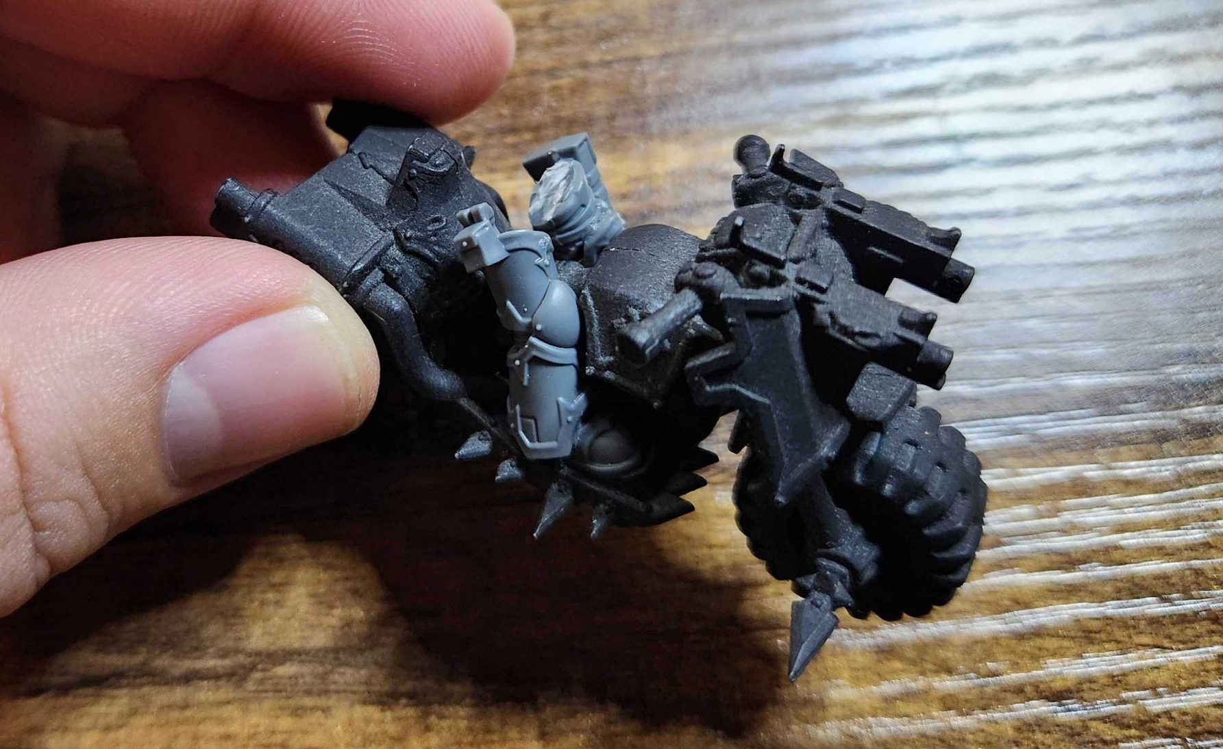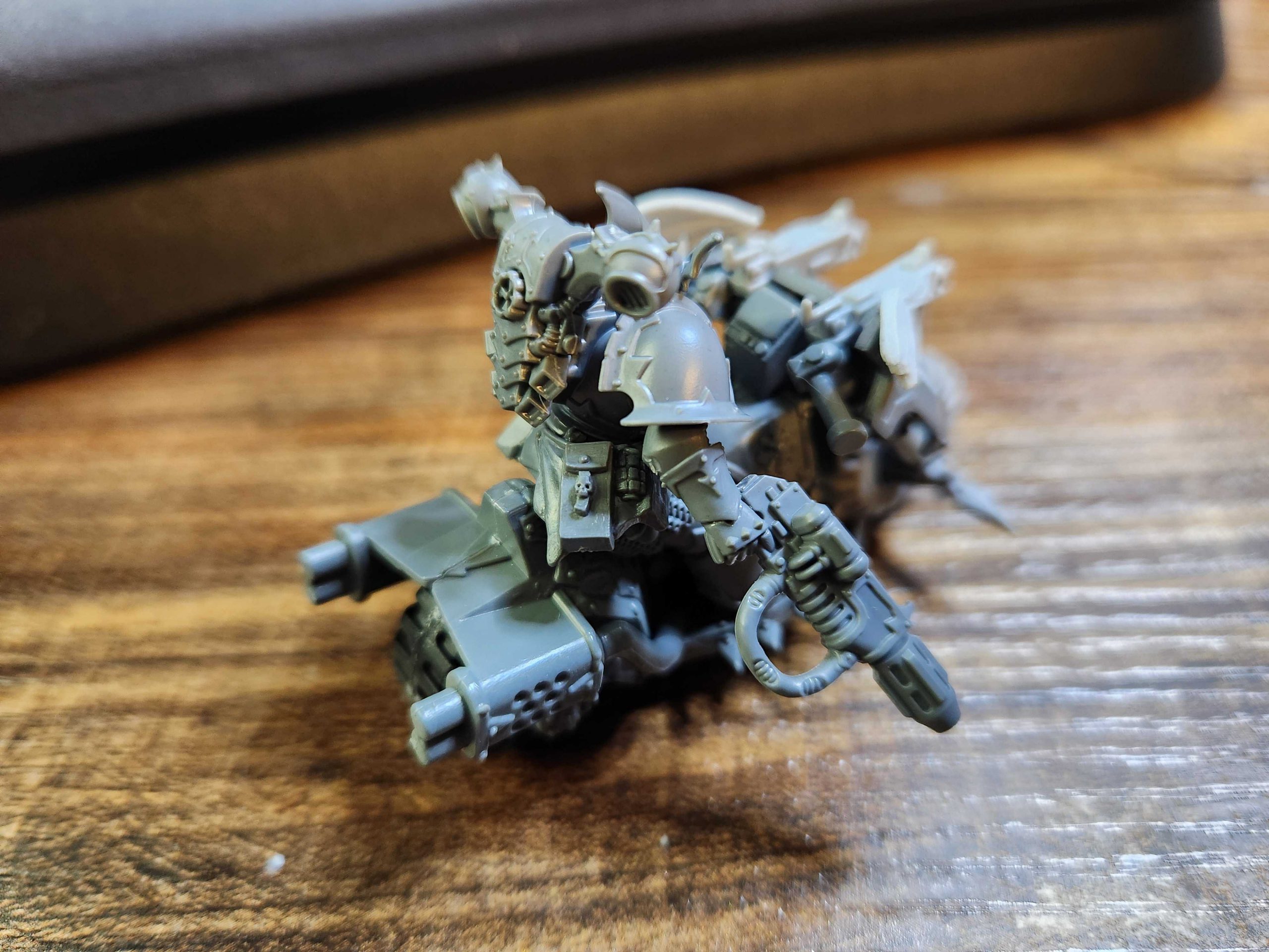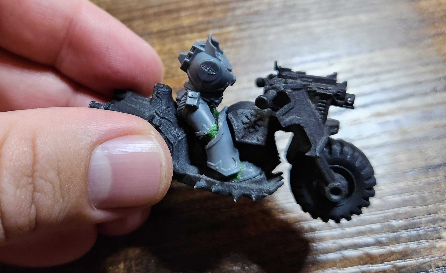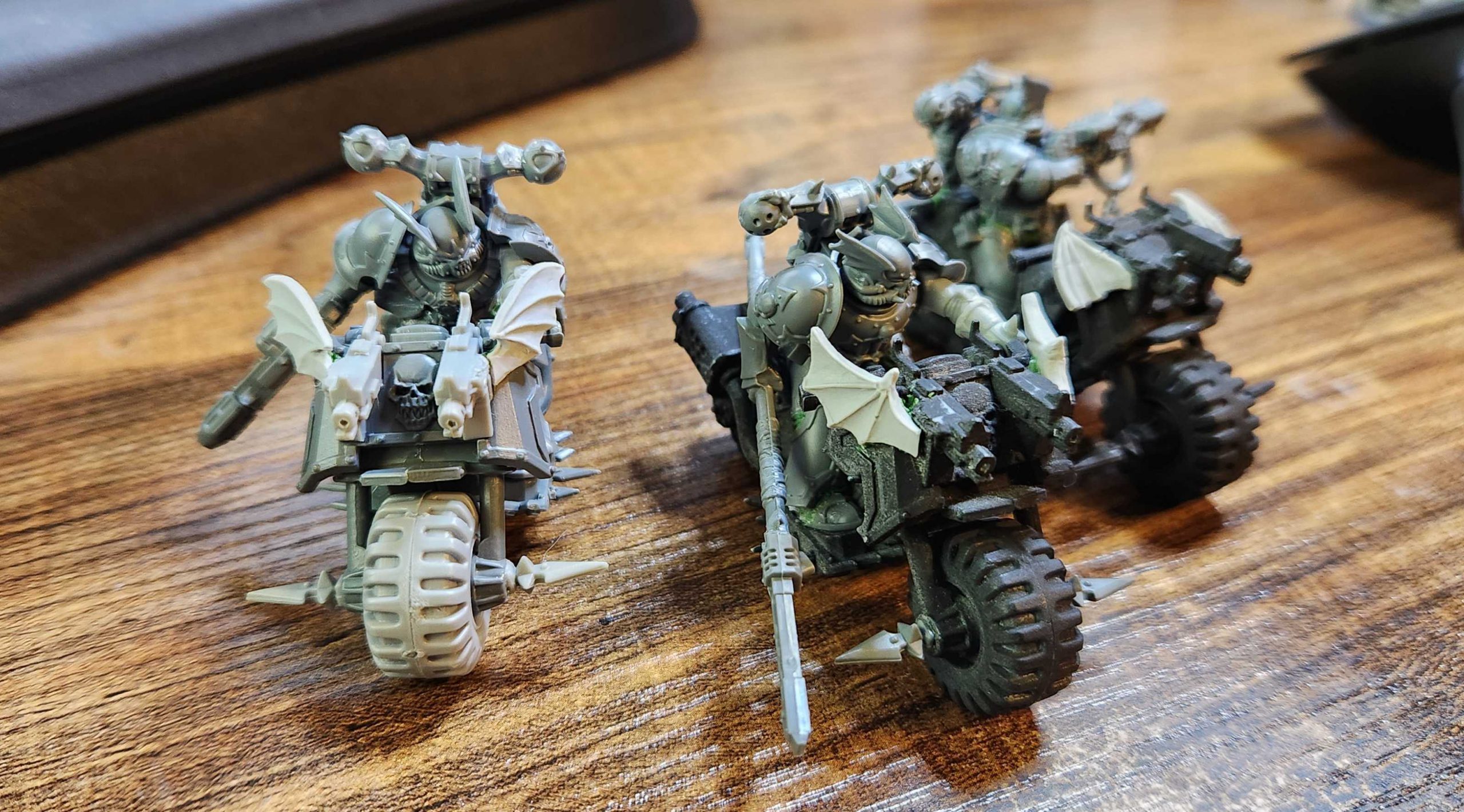 One thing I absolutely want in my Night Lords army is a unit or two of Bikes. I've painted Night Lords bikes before, but they're all the older models which, if we're being honest, look like shit. The bikes themselves are OK if a bit simple - they're workable - but the riders are terrible, both underdetailed and undersized. I wanted to have some in my army, but if I'm going to do that, I need to do some work updating them. The upside is that this is exactly the kind of conversion project that will play well in paint judging.