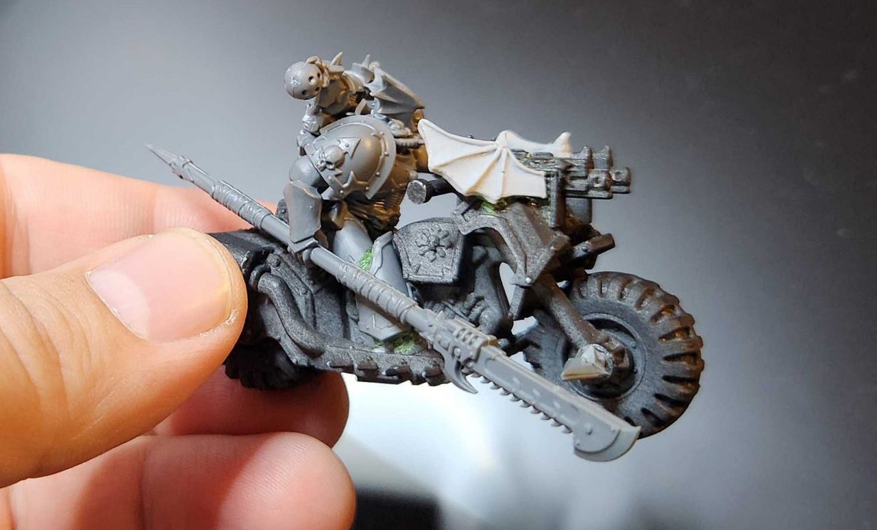 The quad of three turned out great, and I'm really happy with the helmet wings on the bikes as a way to add additional flair. Now it's on to painting them, and I've managed to finish the first out of the three.