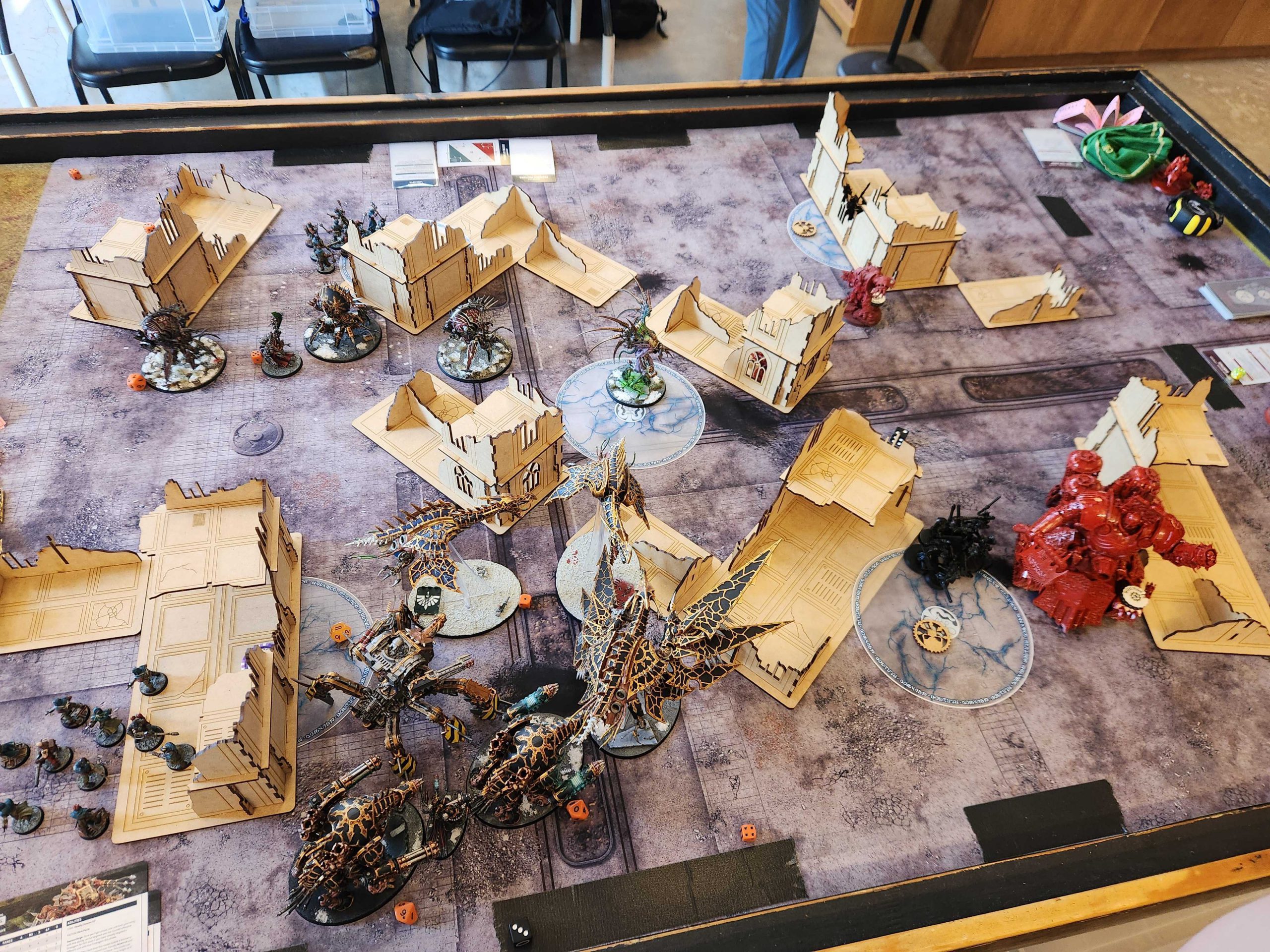 The big added element to this event is that I brought my son Bryce with me. He was supposed to help me play and push models around, but ended up getting bored during deployment and doing other stuff. We're not quite there yet for games, it seems. As a result, I'd end up only playing one game, but buying in for another $150 in charity funds and blowing through EVERY SINGLE RE-ROLL TICKET I had in order to secure that victory. Join in as we meet Mario, my first opponent.
