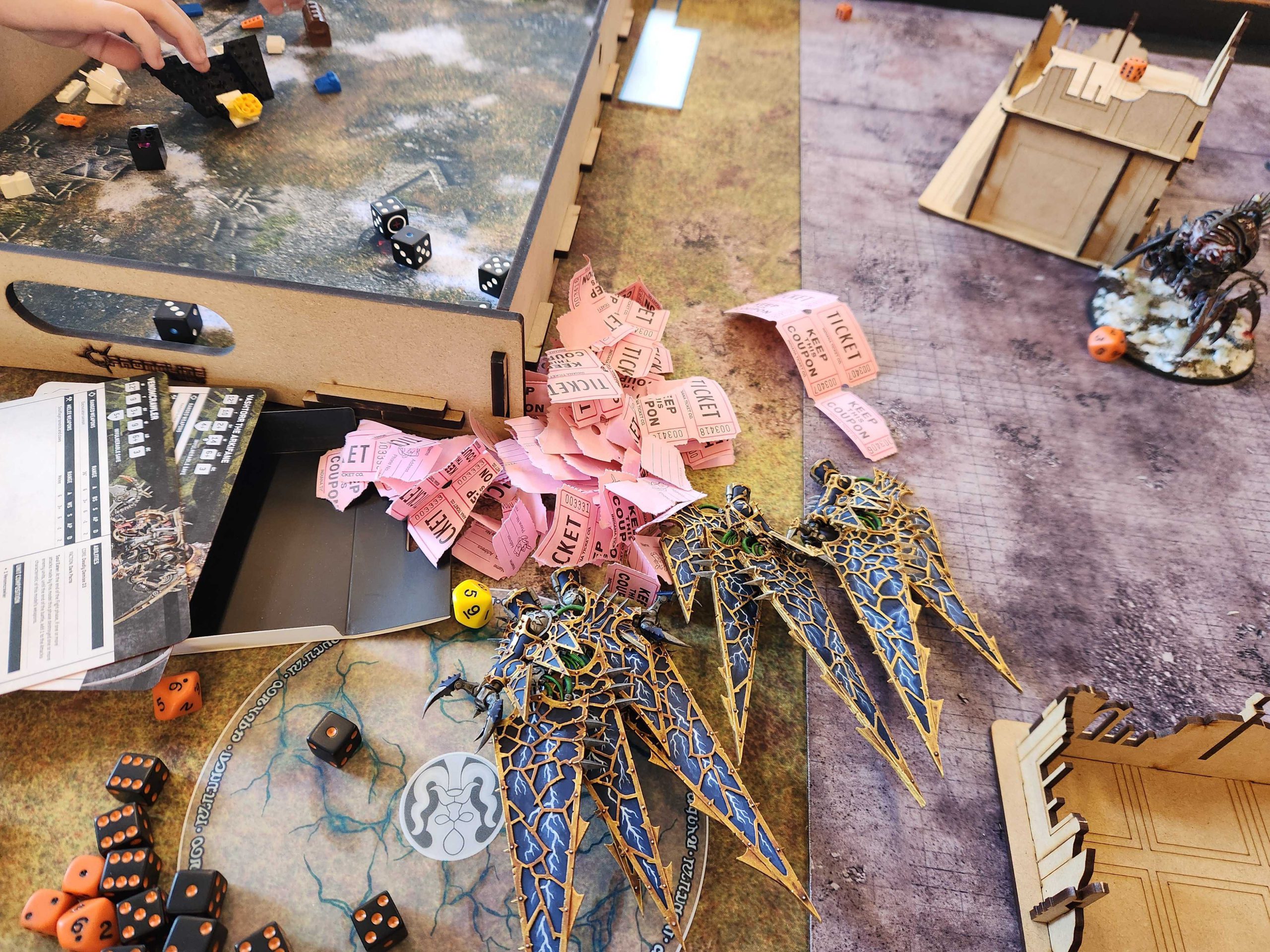 Saturday was the annual Charity RTT at Asgard, and as I mentioned last time, this was to benefit the Houston Food Bank, with participants able to buy tickets to exchange for re-rolls. After my last post, my buddy Max reached out about lending me a pair of Venomcrawlers, while Norman offered to pitch in $50 for me in re-rolls if I agreed to take Vashtorr. So after some tweaks, this is the list I ended up on:
