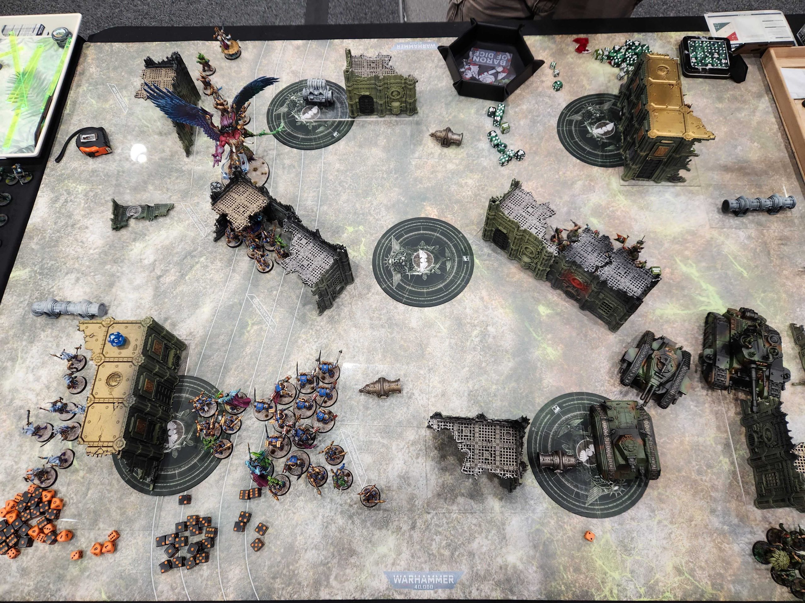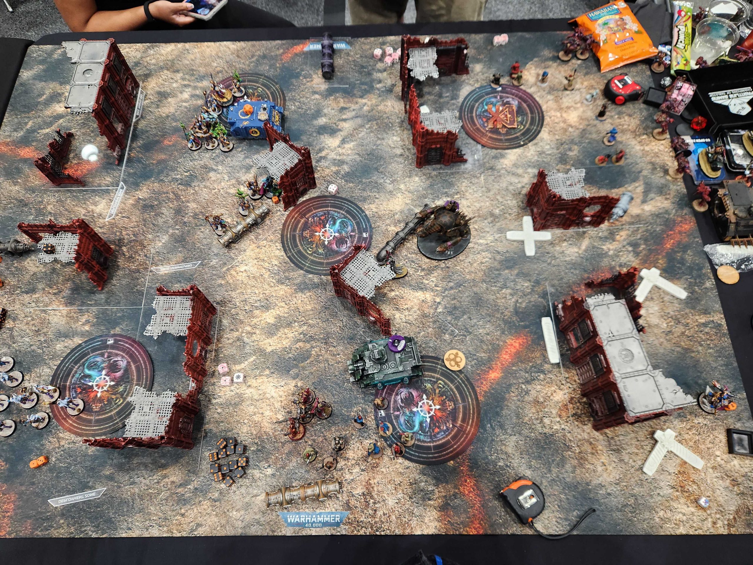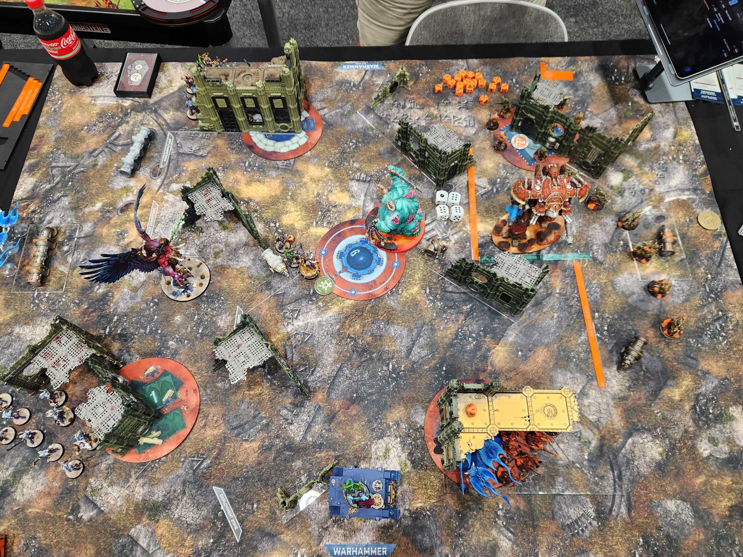 Round 4 starts with a game against Chris and his Daemons. I hate playing against Chaos Daemons - they just do so much shit incredibly well - but Chris is a very fun guy to play against. Which is good, because my dice were absolute dog shit in this game.