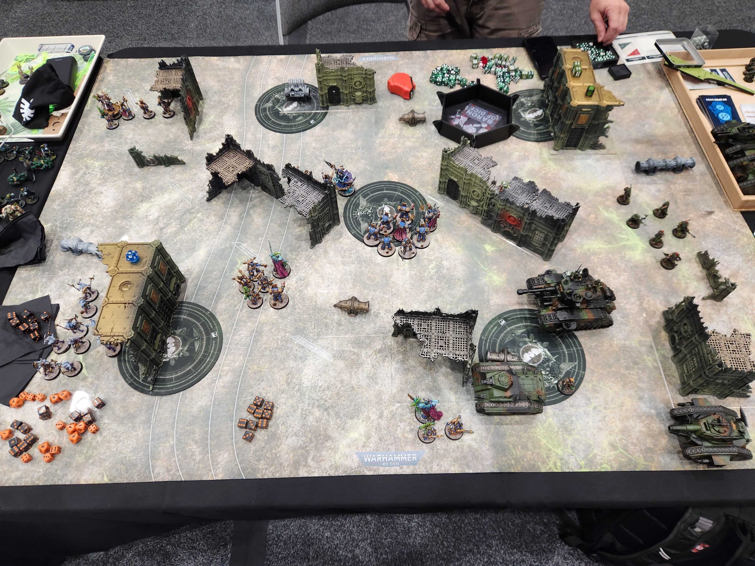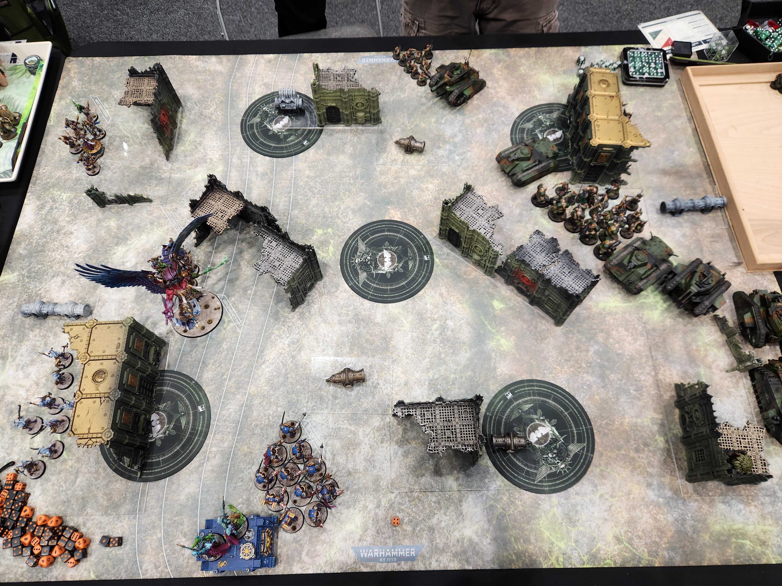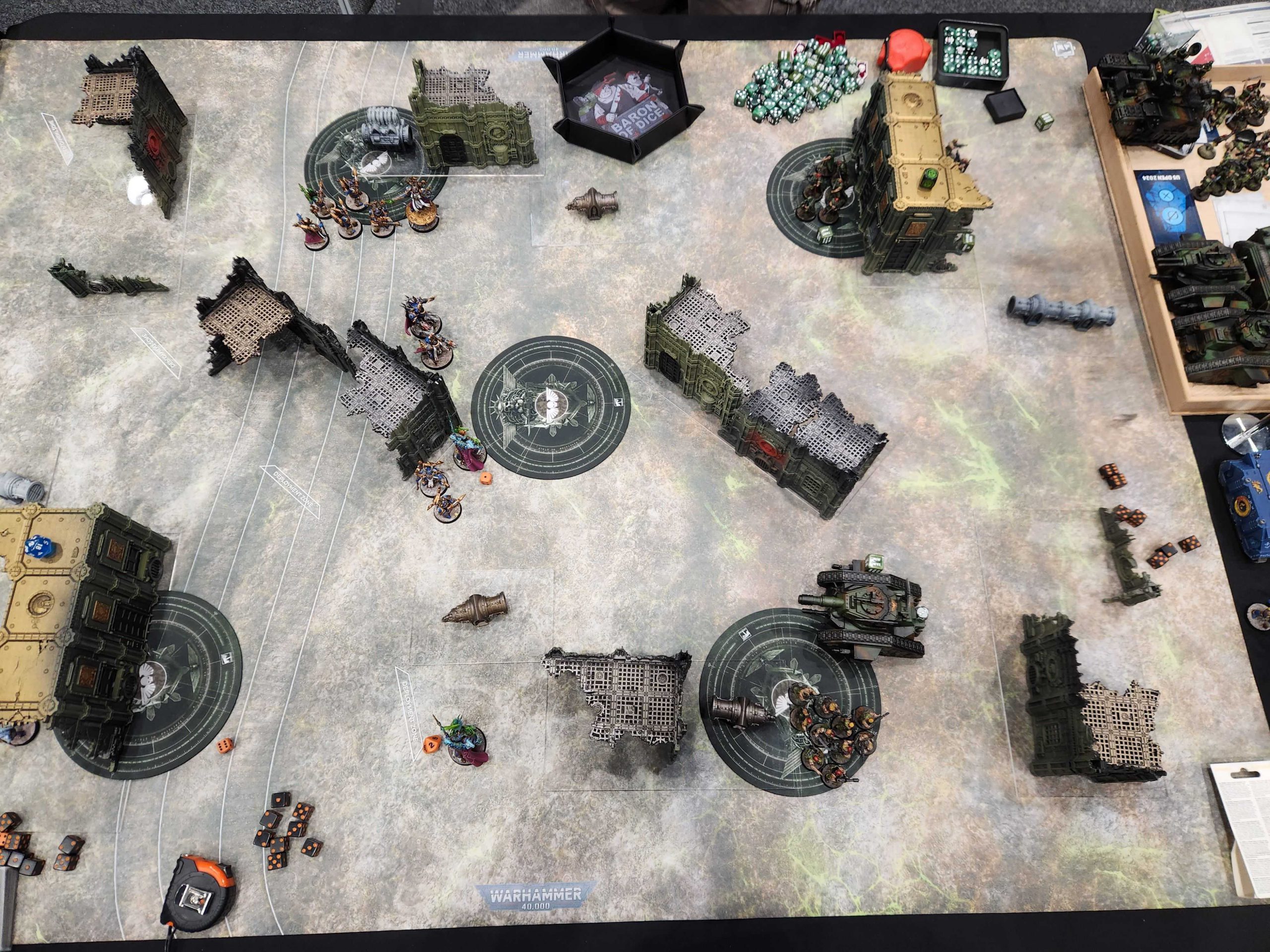 Round 4 starts with a game against Chris and his Daemons. I hate playing against Chaos Daemons - they just do so much shit incredibly well - but Chris is a very fun guy to play against. Which is good, because my dice were absolute dog shit in this game.