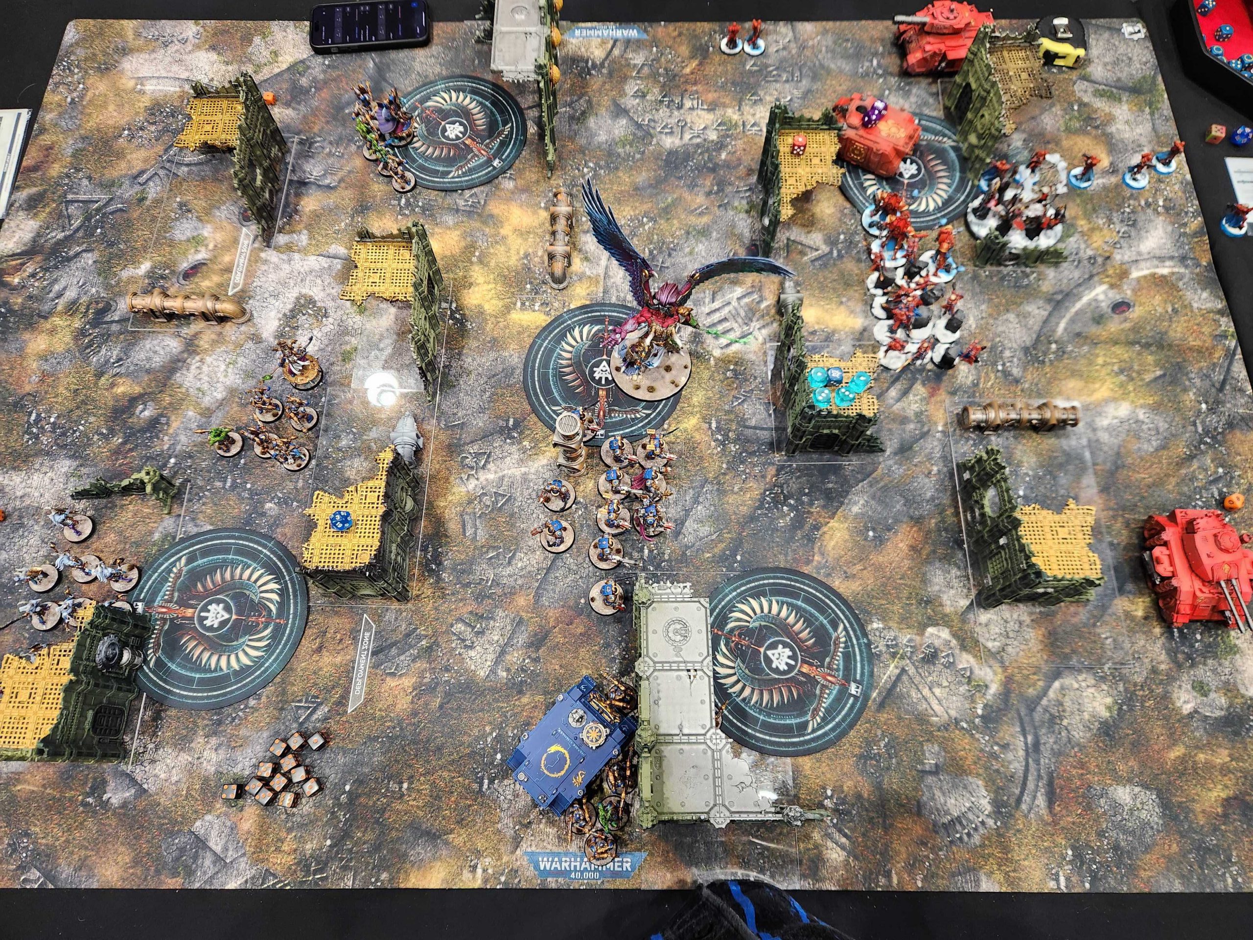 Ultimately I think I played a very good game but Alex got the swing he needed there and I just couldn't overcome getting outdrawn on the first two turns while also going first. To add insult to injury, I keep drawing bad secondaries all game and end up with Extend Battle Lines and Cull -> Marked for Death round 4, with Containment, Establish Locus, and Sabotage round 5.