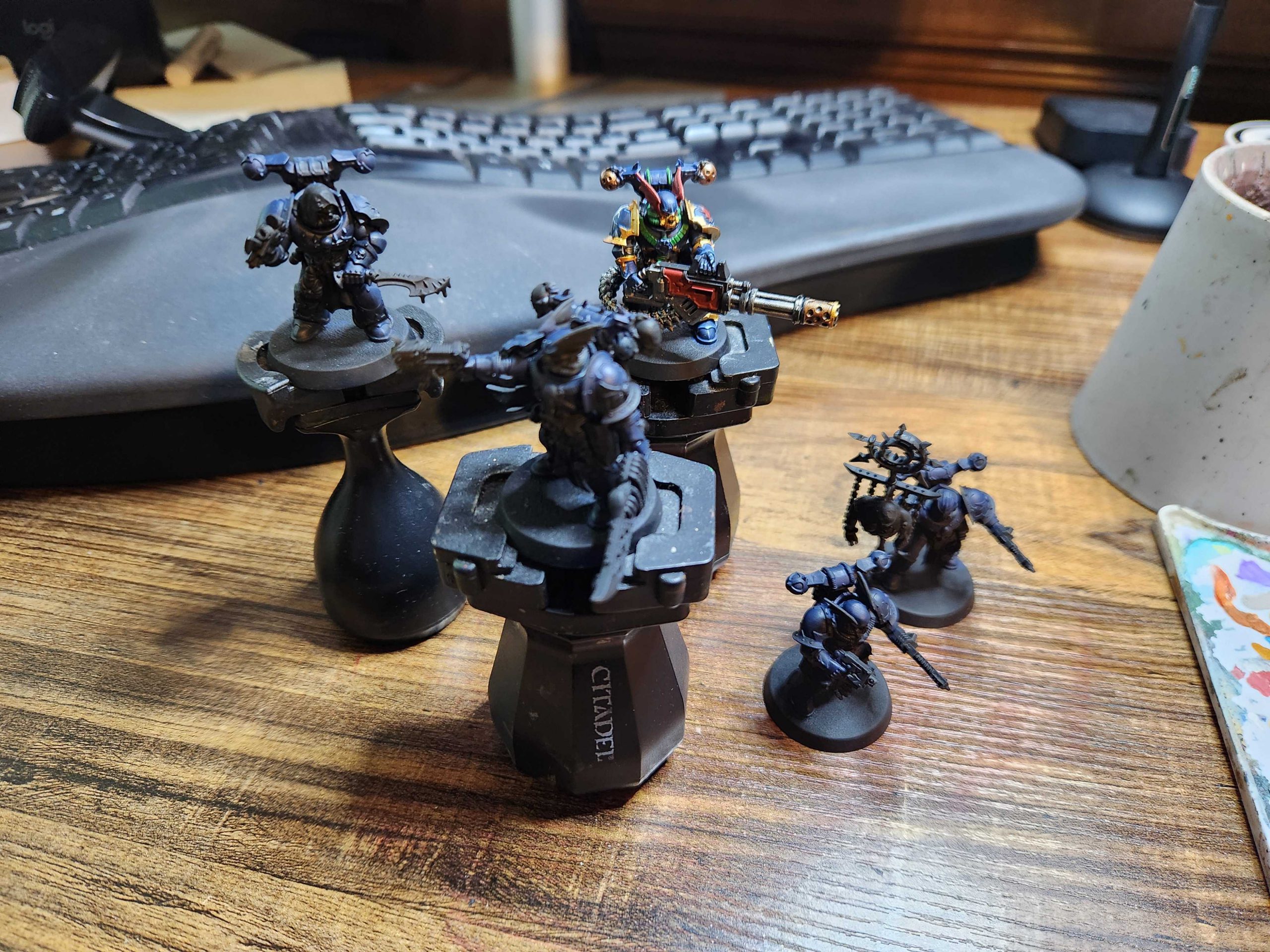 There's definitely other stuff I can do - such as painting more Rubrics, potentially in Night Lords colors? That might be neat, but I don't think it's something I want to do as the long-term value is limited. More than likely I'll paint up another 5-10 Black Legion rubrics with Warpflamers and end up using those instead, since they'll fit the bill visually and match my bases for the Night Lords. The rest of the stuff is pretty straightforward, and I'll probably also look at a unit of Havocs in the mix and doing some visual updates on at least one of my Heldrakes before Tampa. I have a few other things that need to be done as well but I'm going to focus on these infantry first before I start really digging into the vehicles and expanding the army. I have a ton of Night Lords already painted but they're all a mix of 2nd and 3rd edition models and I'm not super big on replacing that with newer models, even if the new models do look rad as hell. So stuff like the rhinos present an interesting challenge because I already have two painted and converted and I'm not sure if doing another set of three on top of those is what I want.
