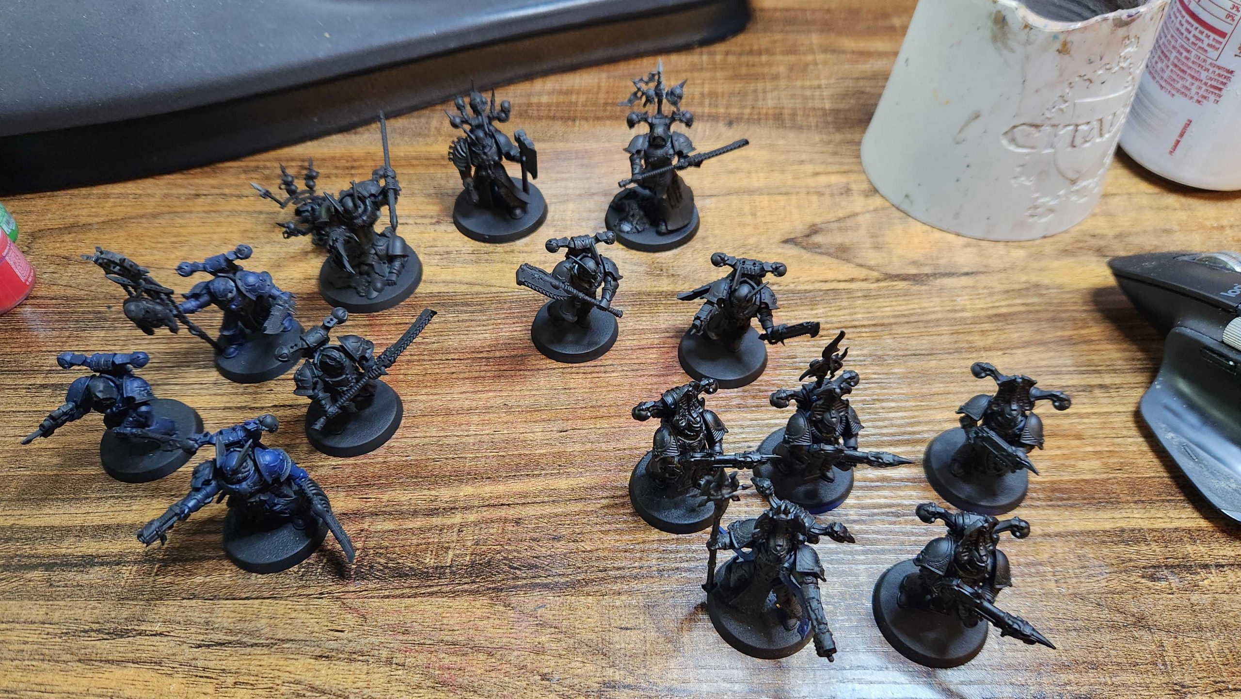 I've had limited time to paint with the vacation travel but I'm determined to make the most of it. Right now it's a lot of Night Lords to paint, and here's the current paint table lot: