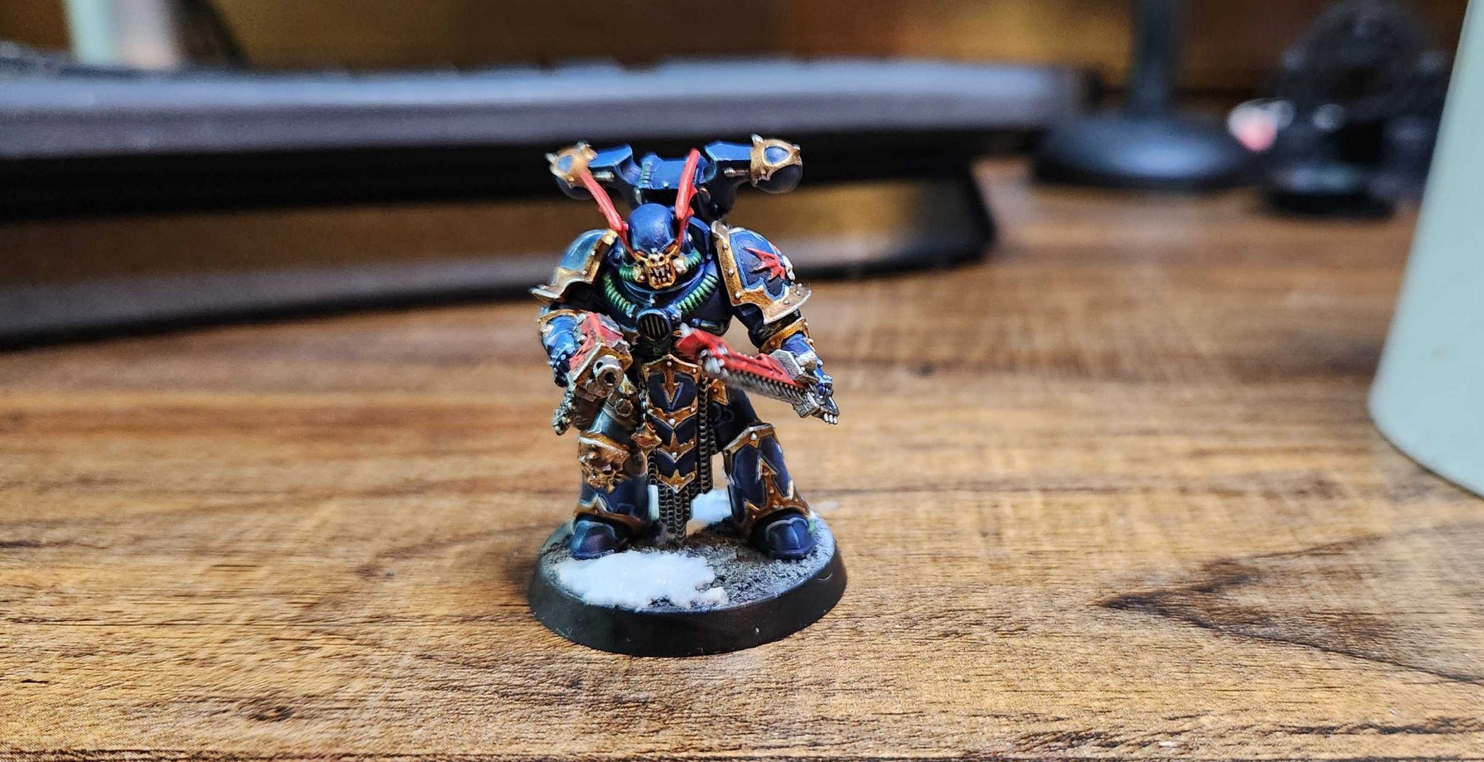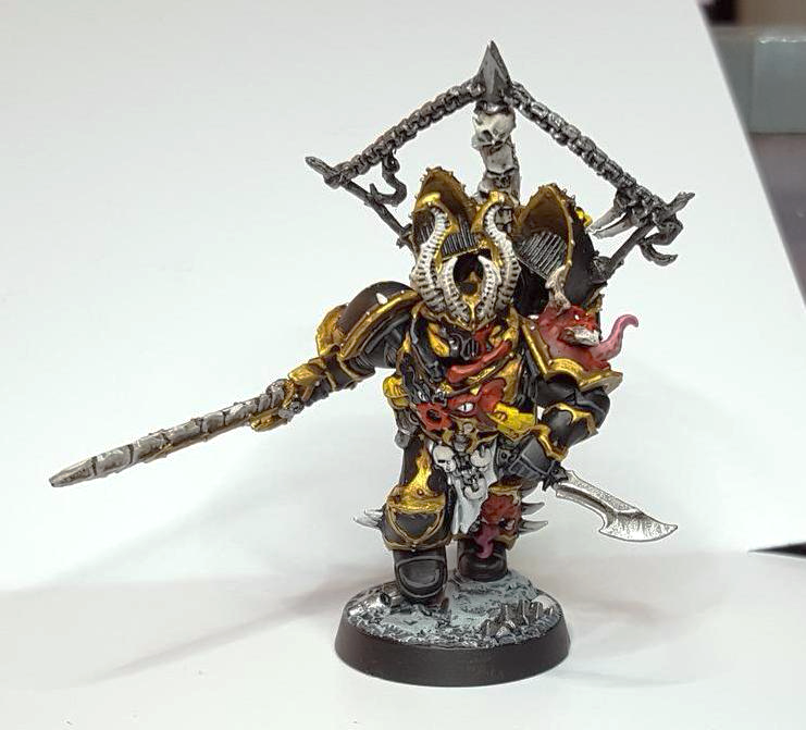 Kaervek performed well (and survived!) the Astradus campaign, and has been part of my army ever since, leading it as the warleader, even if he sometimes allows a powerful Chaos Lord to rise within its ranks. I've run him as a Sorcerer and an Infernal Master alternately, and last year he got a glow-up in a fancy suit of Terminator Armor:
