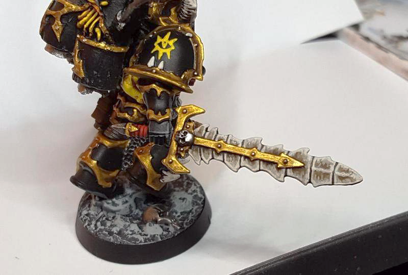 Spineshiver Blade, a relic made from the spine of a Keeper of Secrets. It's a Chaos Warrior sword from Warhammer Fantasy which I painted to look like a spinal column.