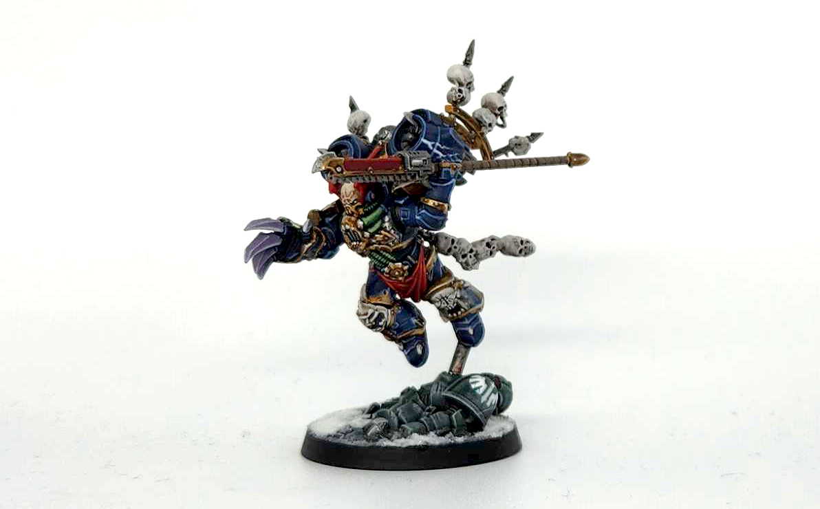 Shan's a slightly converted Haarken Worldclaimer - I swapped out his shoulder pads for a pair from the new Nightmare Kill Team box, as well as the head. Then I cut the head off Haarken's spear and swapped it for a chainsword, turning Shan's weapon into a more thematic Chainglaive.