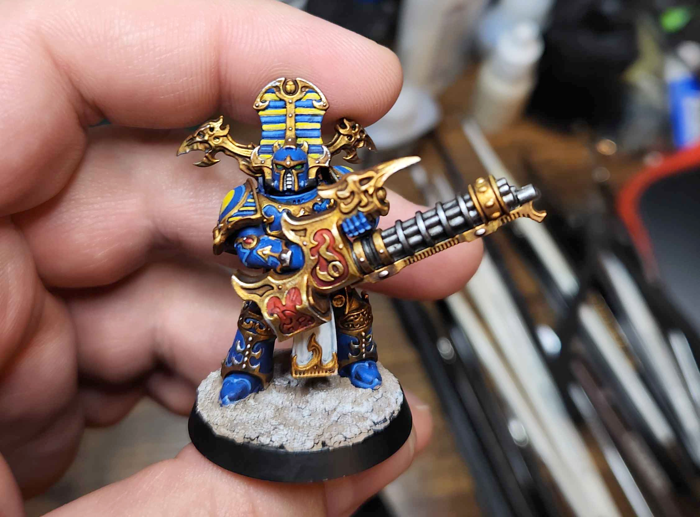 Unfortunately my weekend filled up completely with various children's birthday parties, including my own, and that more or less obliterated any time I had to play another practice game. Which is a shame, both because I would have liked to get in more reps and because I like having a game to talk about every week. But I still ended up with ample time for hobby progress, and that brings me to two key updates this week. The first is the final Rubric I needed to paint for my Thousand Sons: