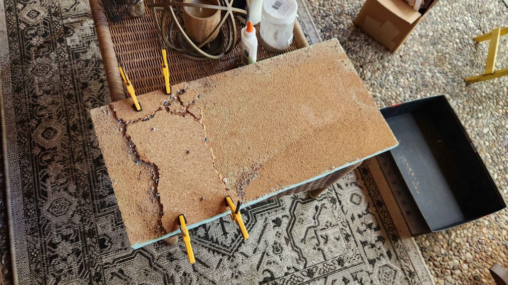 That sits for about an hour and then I coat the whole thing with Woodland Scenics Scene Cement, which is basically a mix of watered-down PVA glue in a spray bottle. It needs a couple of hours to dry but once it's done the sand is absolutely stuck on there and the whole thing is ready for priming.