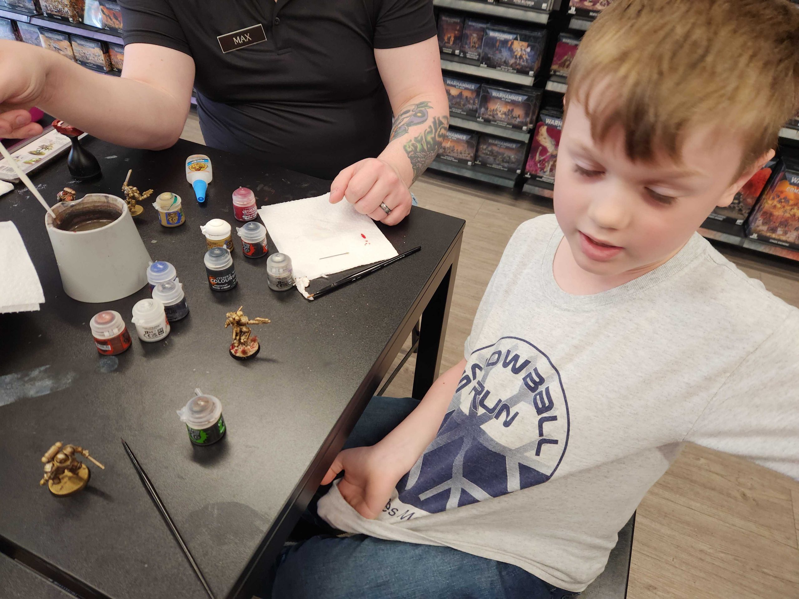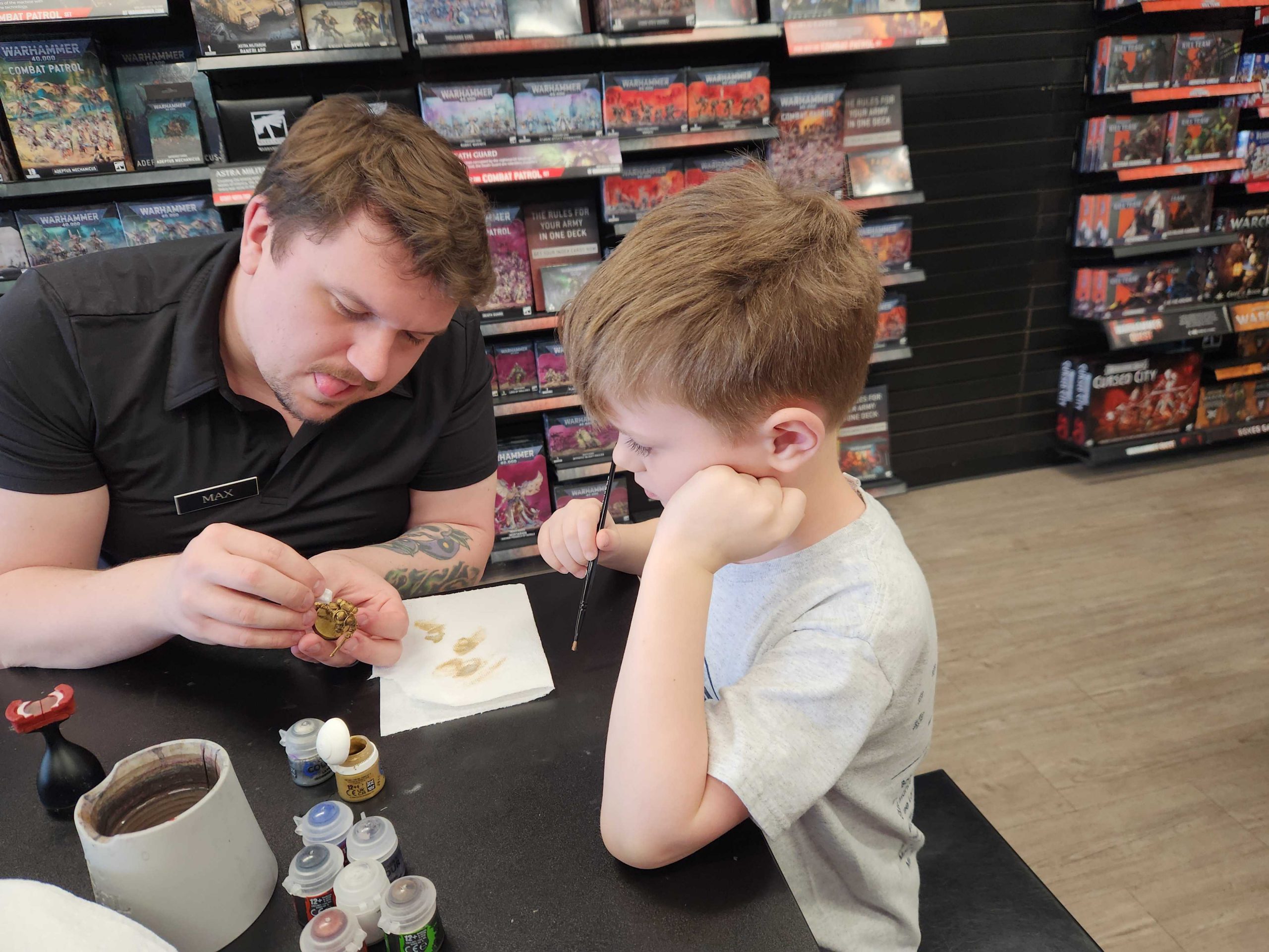Max Garcia, a truly great hobbyist and FLGS operator who knows Bryce and is game to help teach him how to paint and play. I'm good at Warhammer, but Max has run more demo games and Bryce will listen to him when he won't listen to me.