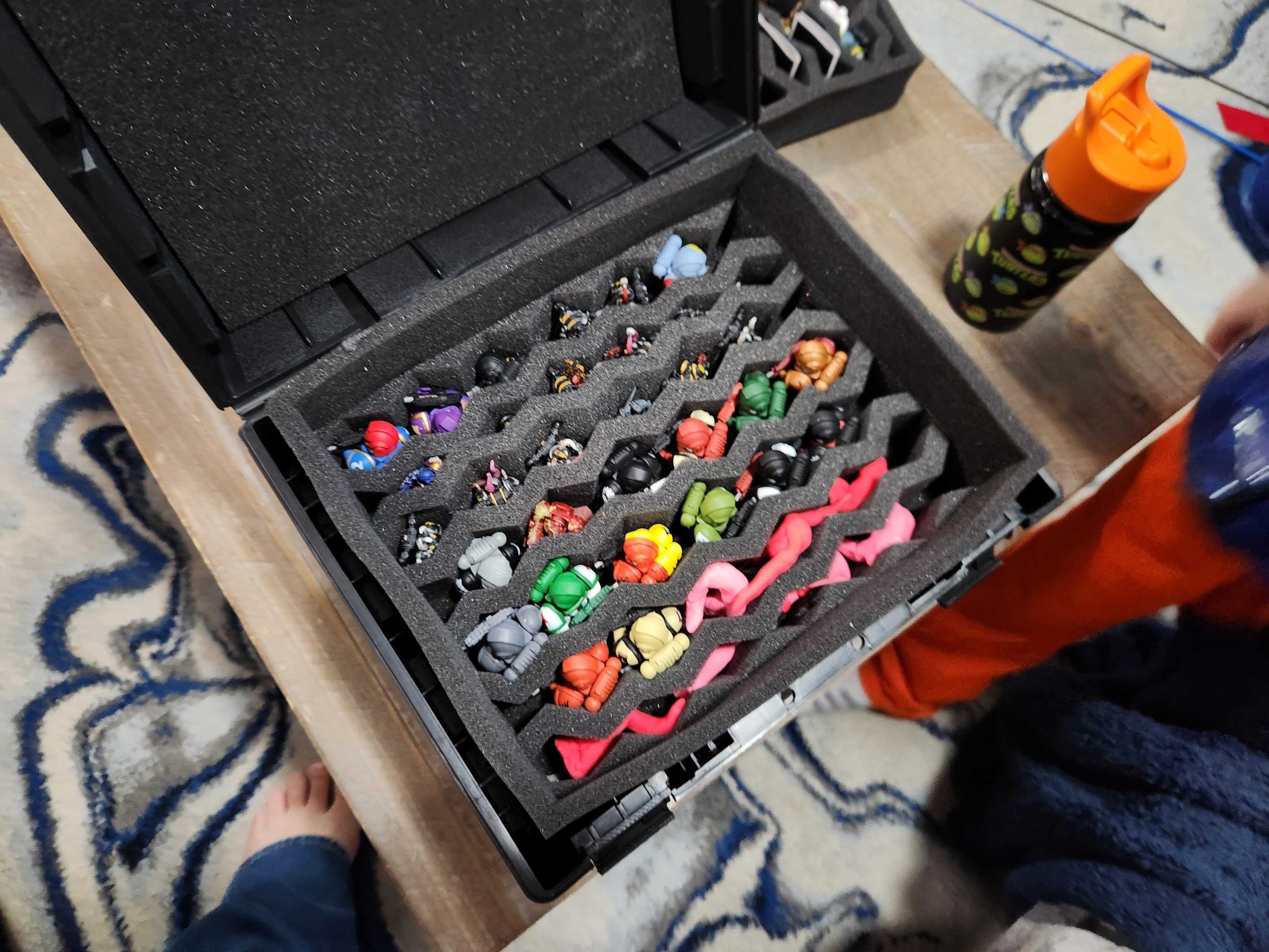 I bought Bryce a case for his minis on the way out. It was more than I expected, but in a pinch I'll use it for my stuff. Bryce immediately takes it home and stuffs it full of all his minis, which includes his three golden assault intercessors, the terminator, the intercessor, the chaos spawn, a couple dozen advent calendar marines, some old black legion marines I gave him, and a series of pink tentacles he made out of play-doh last year to fight against with his marines.