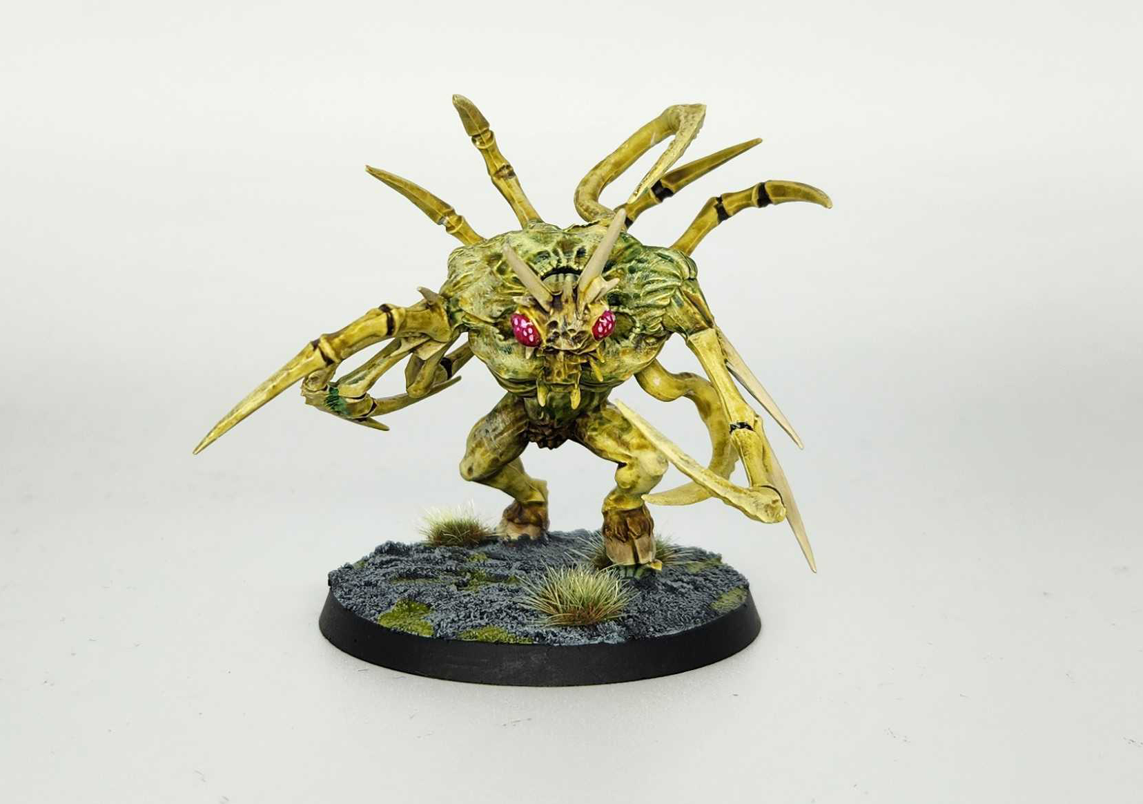 Max and I walk him through the process, and Bryce gets one marine fully painted while the other two get about halfway there. They've been washed, at least. We'll come back and add more paint to them soon. While he's painting, I steal some time to paint beside him, and work on a Death Guard Chaos Spawn I've had sitting around a while. It's a good excuse to try out different shades of green Contrast Paint Max has on hand.