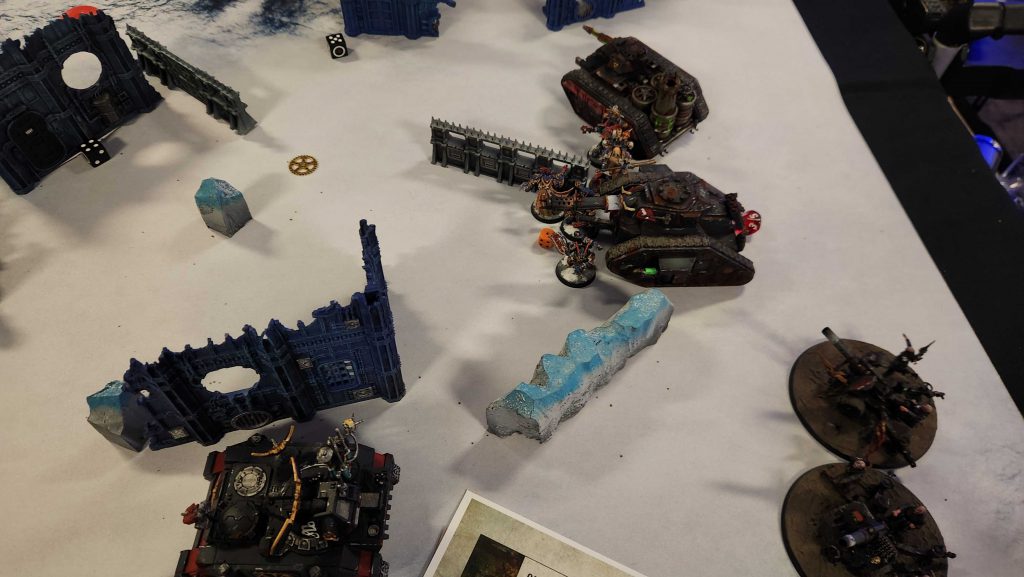 When each faction retrieved the six necessary bafmodads - daggers for Chaos, plugs for Xenos, and keys for the Imperium - they'd unlock their special artefact and get some kind of bonus. There didn't appear to be any way to stop this from happening - if you build the fancy doodad for a campaign like this, you're gonna end up using it. By day 2, everyone had one of their six bafmodads. The Imperium weren't doing well, but they were resolved to claw back some wins - and as it turned out, the mission would work very much in their favor.
