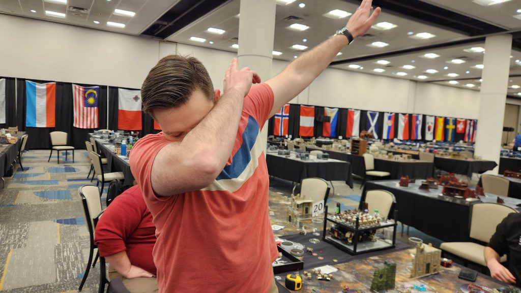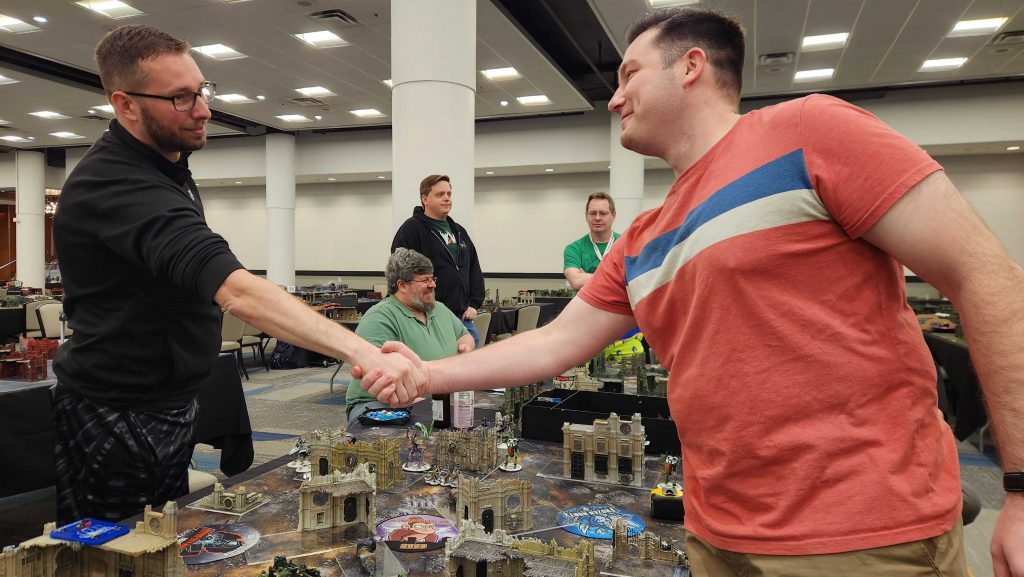 The net result is that while Kelling manages to stick around a bit and do some damage, Scott is able to hold the upper hand almost all game long, riding a game win. Scott now holds the tiebreaker between the two players. On the plus side, this is good practice for James, who may have to take on an Astra Militarum player tomorrow.