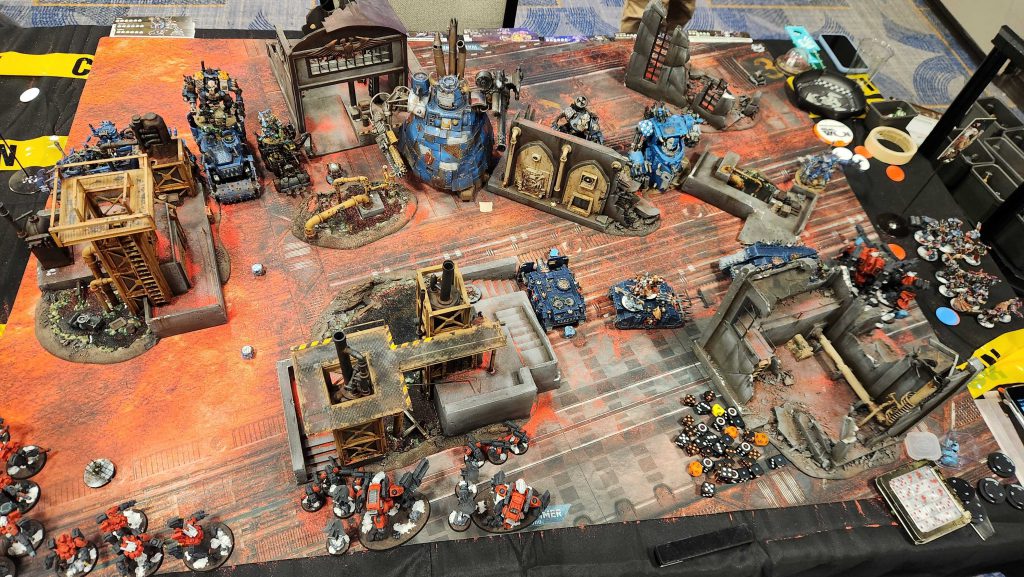 - The Missions and Special Rules. I really appreciated that they put in extra work making custom missions, Battle Traits, and Crusade Relics for this event - the Pariah Nexus rules wouldn't have been a good fit at all! But the rules they wrote needed another pass or two - the Relics and Traits were massively overtuned, and the missions combined with the terrain to create some terrible go-first-and-win scenarios. They also weren't really asymmetrical and didn't feel connected to the narrative.