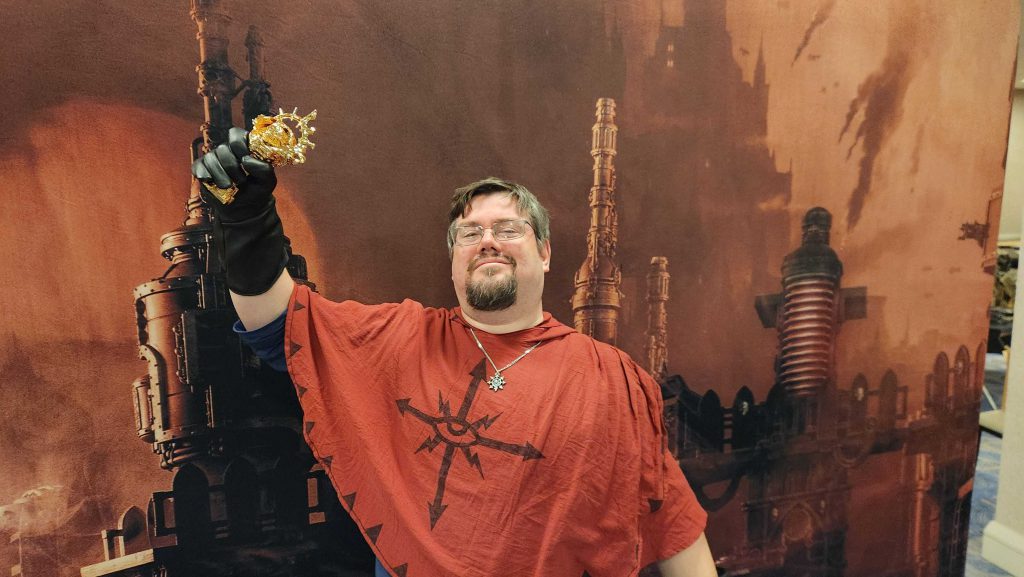 This fuckin rules, and it's equal parts elation and relief. I've been working toward this for the better part of three years now, first with Black Legion and now with Night Lords, painting an entirely new army this year with the express purpose of taking home this award. It feels great to walk home with this, and it's more or less my primary goal coming into this event.