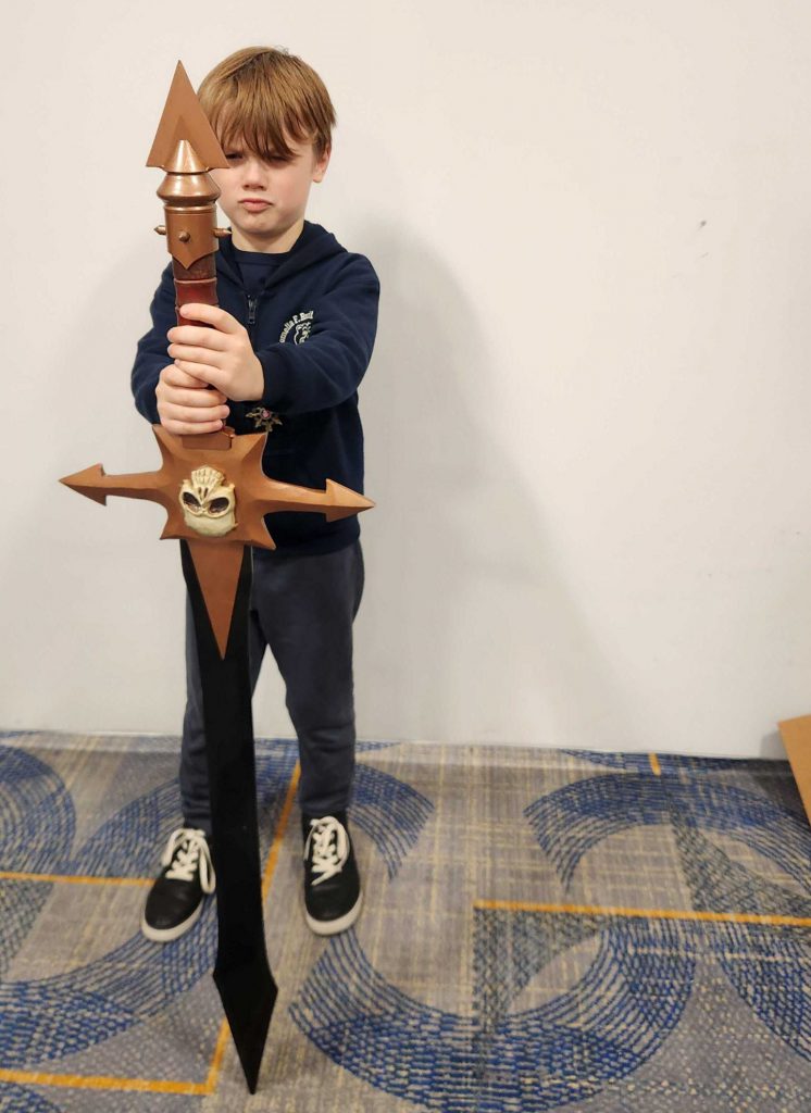 As a shiny, gold award Bryce is immediately enamored by it and asks if he can have it. I tell him no. He says OK but if I win one next year he can have that one. I kneel to his level and hold him by the shoulders and tell him very sternly that if he wants one of these awards he's going to have to paint an army and win it himself because he cannot have mine.