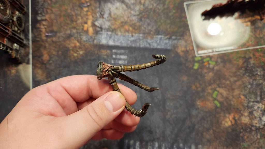These weren't as bad as I expected and I'm happy with how they turned out. A lot of the work on these was solved by using leadbelcher spray on their bottom halves, then shading that with Agrax and covering huge parts with Typhus Corrosion and a drybrush of Ryza Rust. The conversion part I'm happy with on these is the scourges - having assembled many Forgefiends means I have lots of Maulerfiend bits, so I just used some greenstuff to attach those to a havoc launcher plate and then put a magnet on there to stick it to the Defiler body. It looks way better than the stupid standard defiler and construction-wise, it was just a blob green stuff smeared over and painted fleshy: