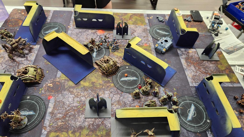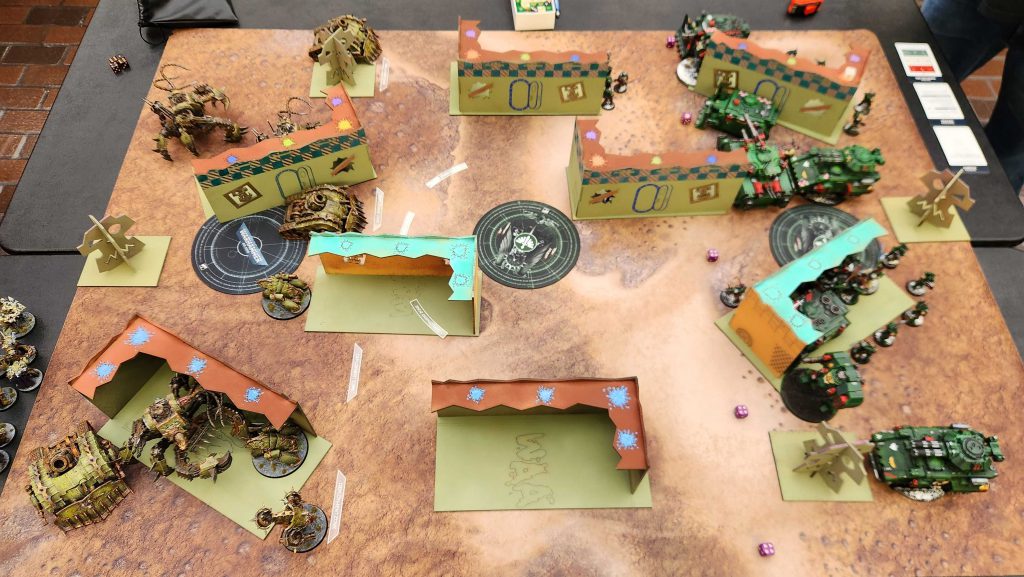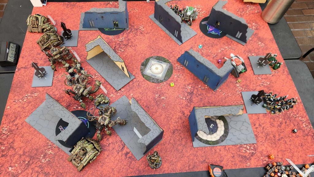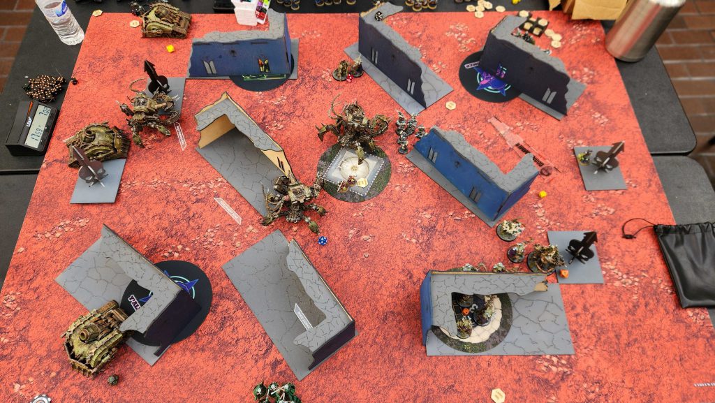 This game ends up being a pretty brutal back-and-forth but the key decider in my favor was that Daniel's dice were pretty bad in those first two turns, leading to his RepEx basically doing nothing on my Defilers and letting all three of them run wild. This was the only mission where I had issues moving them, in part because the terrain had been jostled and that meant some of the lines looked too narrow to move through. Once I'd pulled the RepEx down, it was just a matter of time and while what Daniel had left could still do real damage, I was pretty far ahead on points.