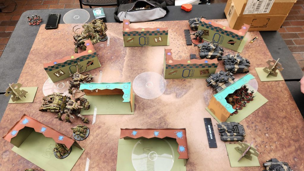 I only have two complaints about Rise - which was absolutely a very good and well run event despite those complaints - and one of them was the terrain. While it was fine in terms of volume and used Games Workshop layouts, there were some bad deployment + layout combos and I had issues with the actual MDF terrain set being used. Most of the pieces on the tables were too large, both in terms of being too tall and in terms of taking up the entire footprint of the terrain base, which made it near impossible for wider tanks and the Defilers to get through. This only really caused me problems in one game, but was a headache I wasn't expecting to have to deal with.