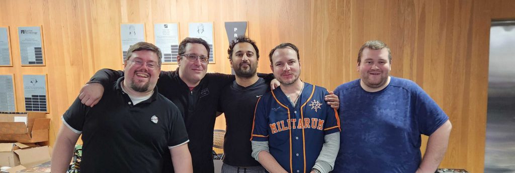 I'm playing with the Astros Militarum. They're a group of locals made up primarily of guys who play at Asgard in downtown Houston. This is more or less the group of players left after the most serious players broke off to start their own team (Sanctum), but I really like these guys and they asked me to fill a spot. I needed one more event to make six for my ITC score, so I was happy to join. With me are David (Necrons), Vinay (Grey Knights), Brendan (Votann), and Chris (Astra Militarum). What we lack in practice and expertise we make up for in raw gumption and a pretty solid set of lists that lean heavy into skew in the right ways for a teams event. Vinay's running heavy on Dreadknights, David's list features a trio of planes, Brendan's Votann list runs triple Hearthguard and a pair of Land Fortresses, and Chris' Astra Militarum list is more balanced, but with a heavier dose of infantry than you'd expect.