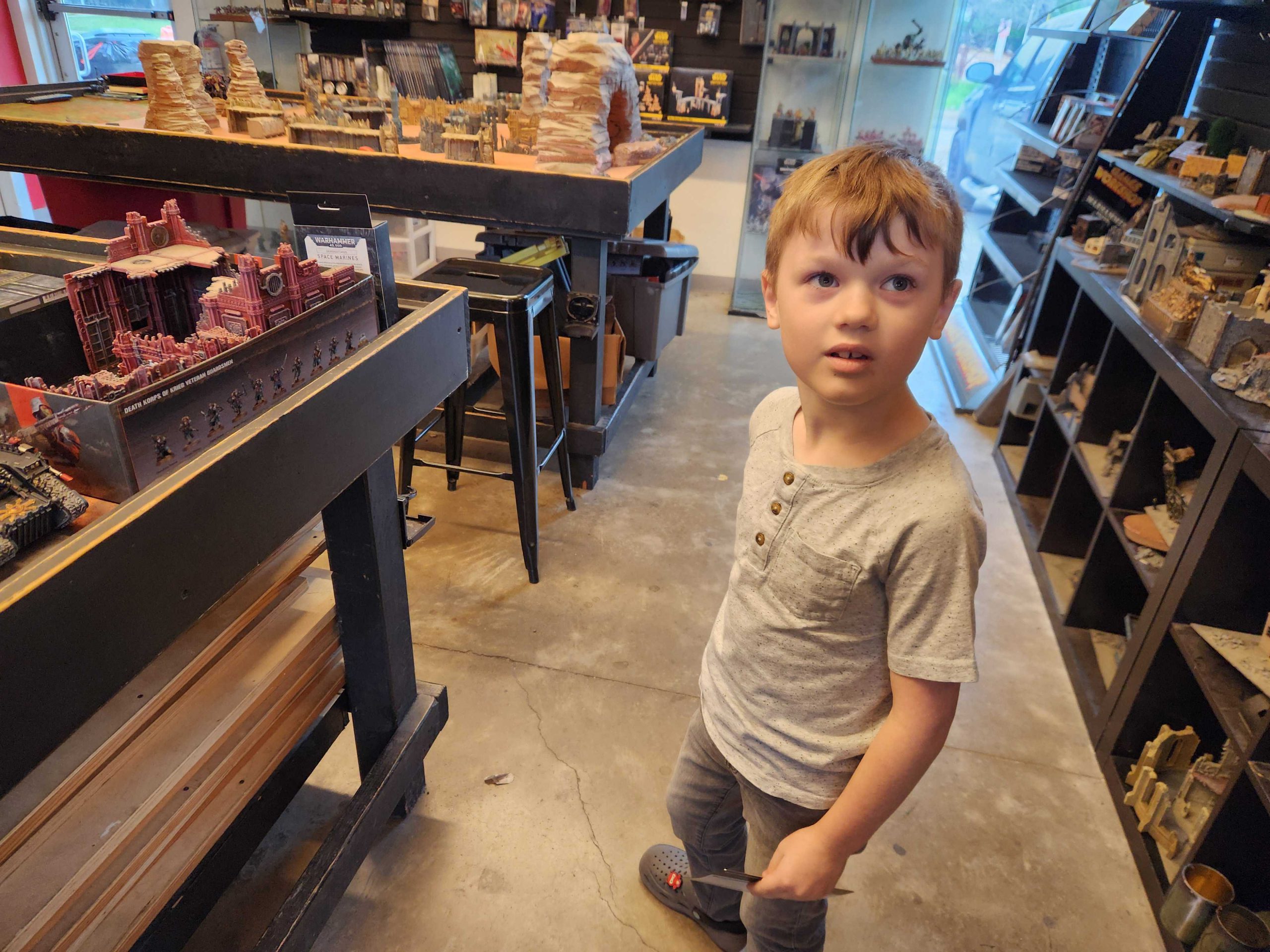 It's a bit too much for Bryce, and he ends up learning to play Beyblade from some guys at the store while I finish off the game. Which is cool, but I'd have preferred something a little faster for him to jump in on. Next time I'll keep things a bit simpler for him.