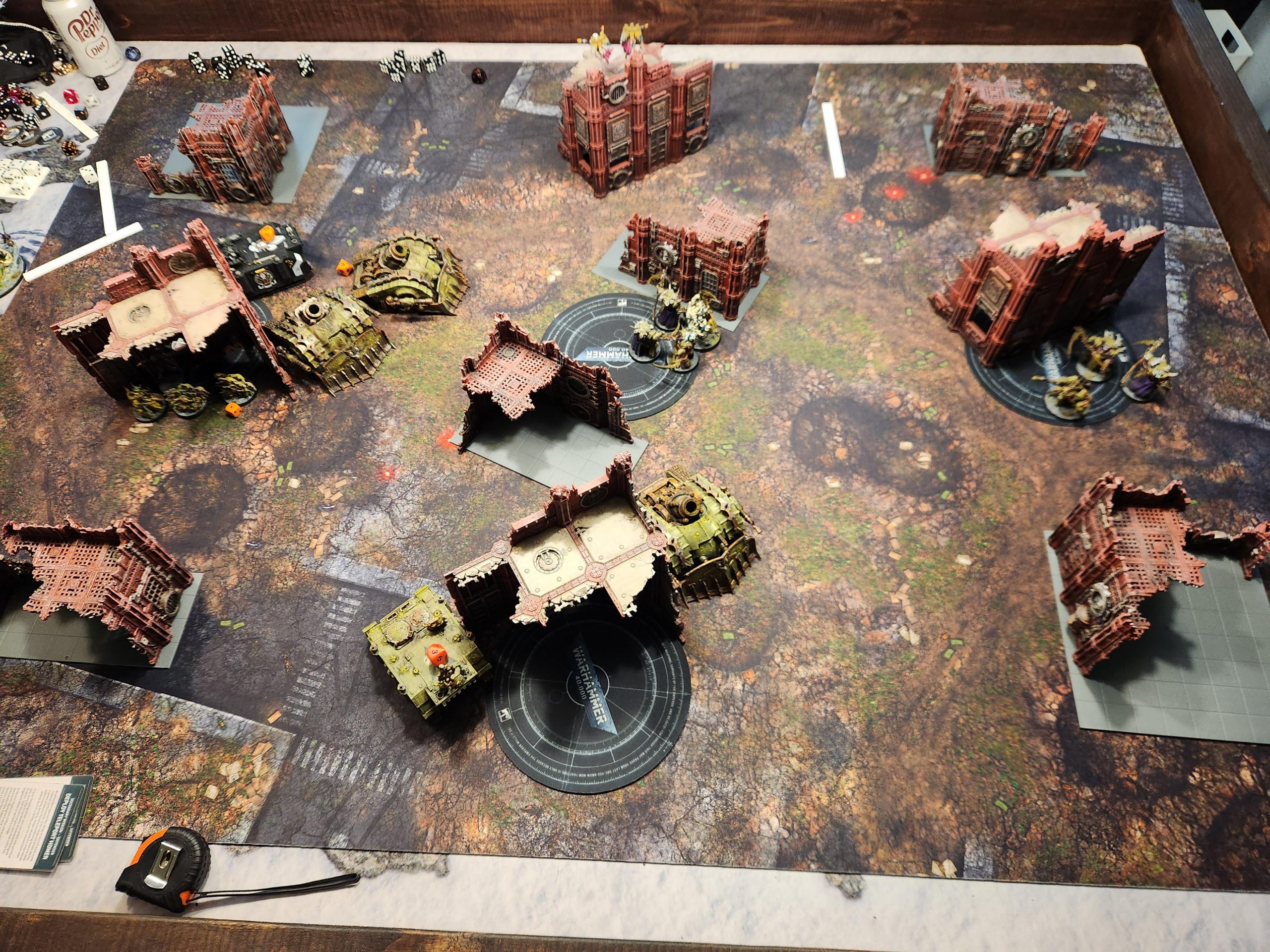 - Keep a sharper eye on the backfield. I haven't figured out a good way to protect my backfield on this mission while pressing forward and that's an area where I probably should just use the Nurglings, keeping them near the corners so they can Investigate Signals and I can use the Rhinos for turn 1 nonsense.