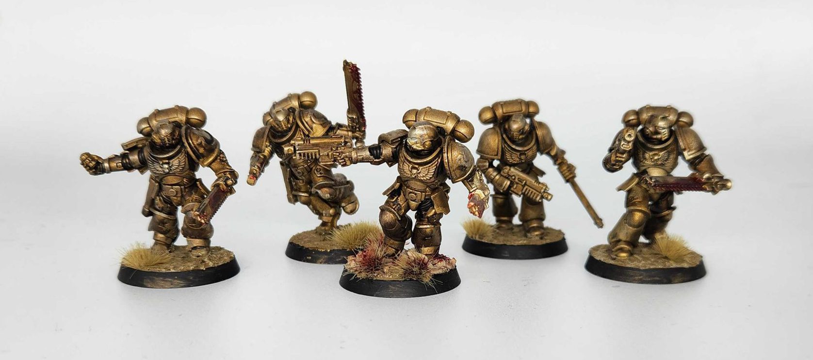 The reason to do this is because it gives us a very specific environment to paint in - Bryce will paint at home, but only if there isn't a single TV on in the house. So the Warhammer store gives us a great environment to do that in. It takes some prodding, but Bryce manages to get through all four of his remaining Assault Intercessors that day, giving him his first completed unit.