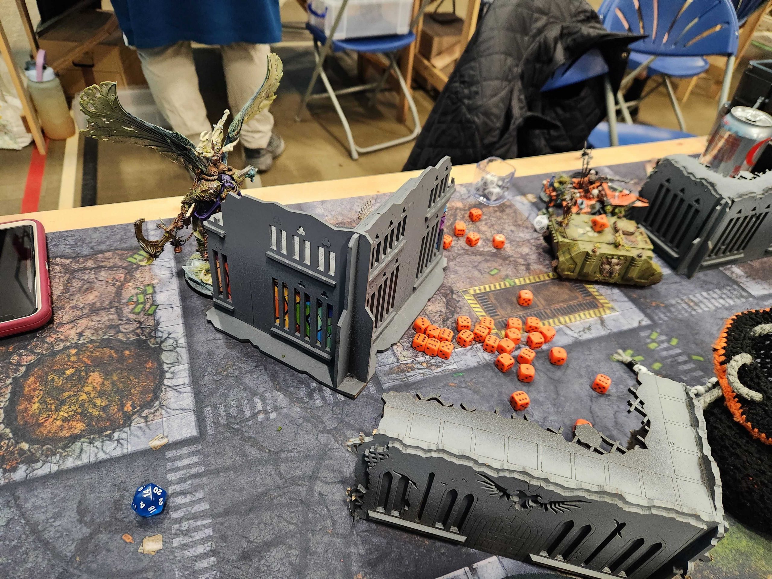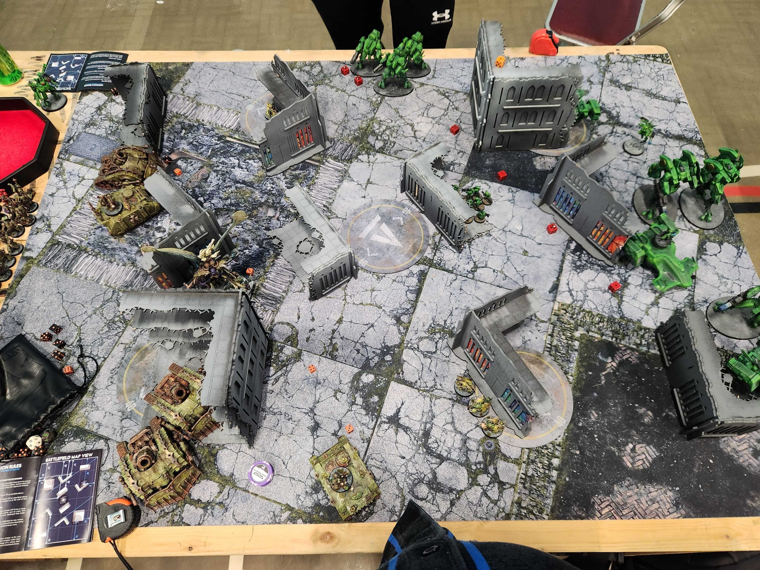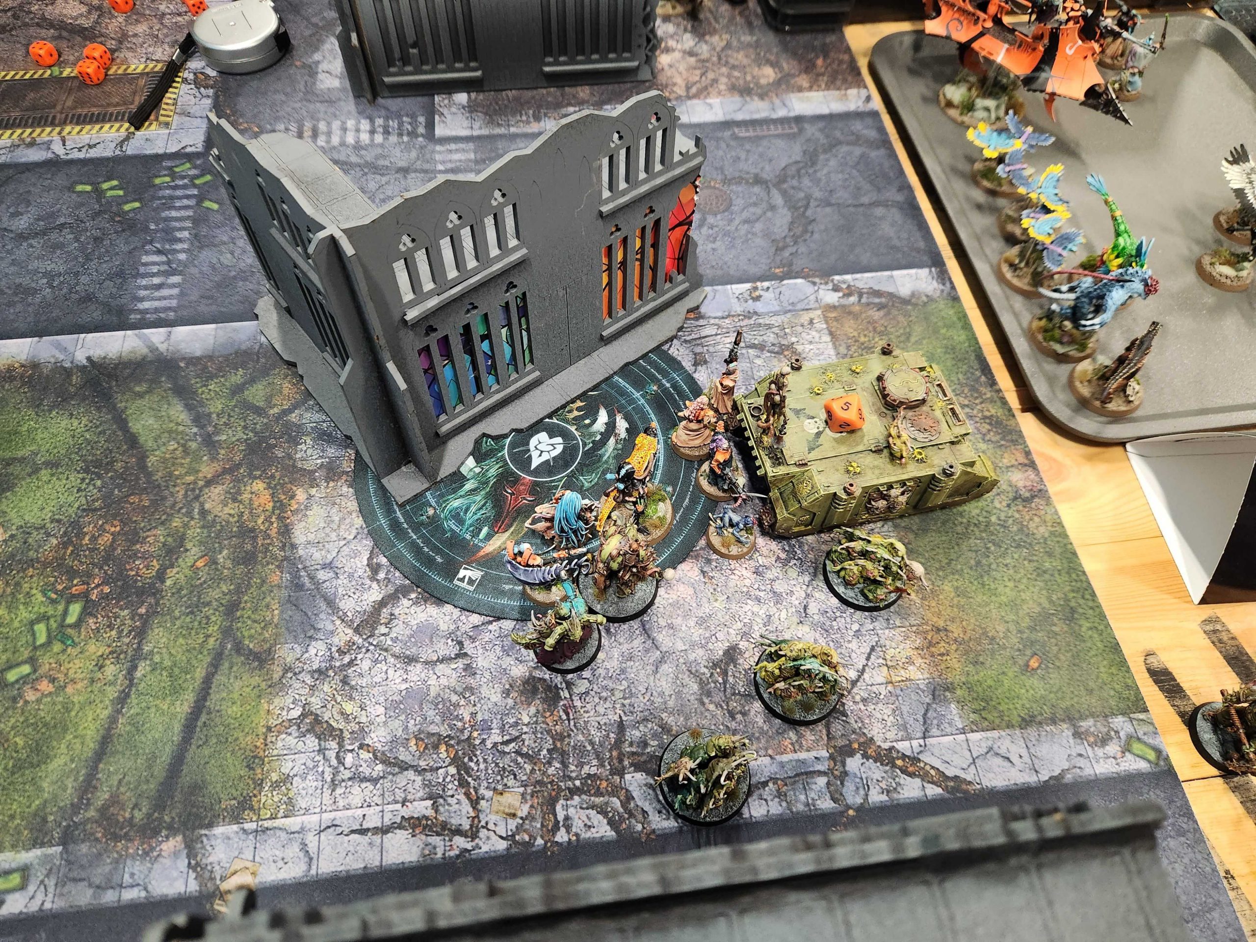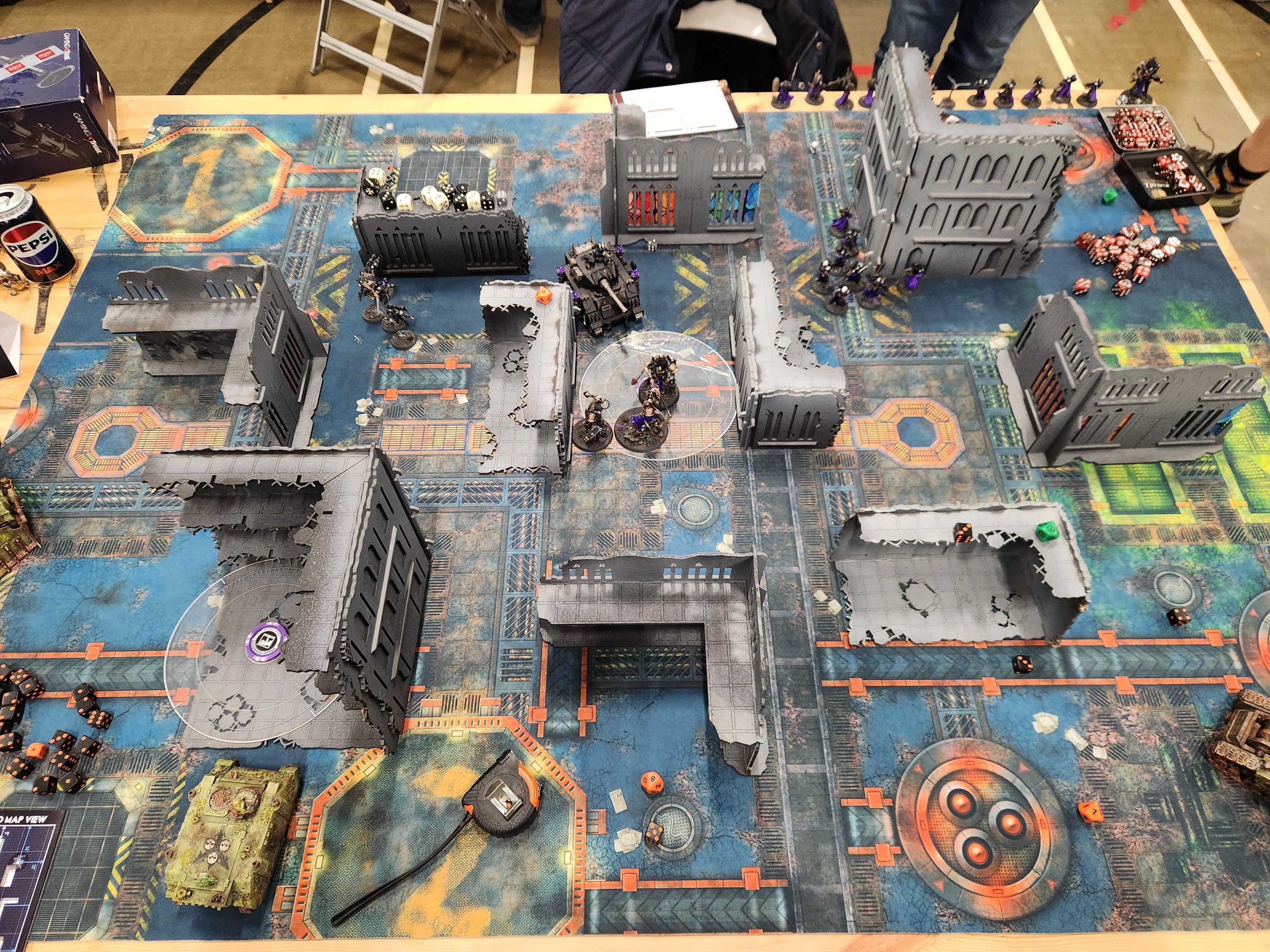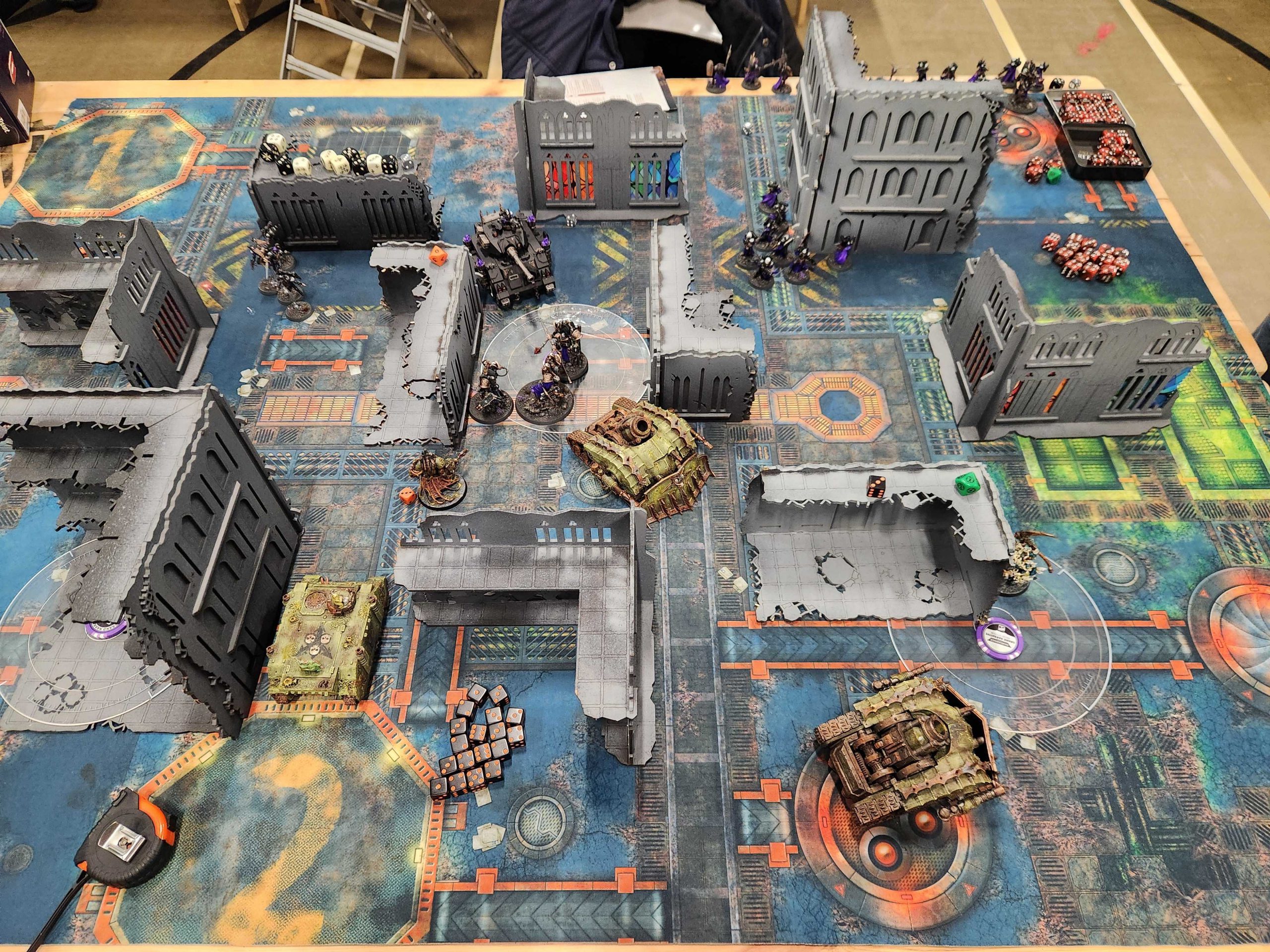 Joe played a hell of a game on a low-scoring mission. Sisters are never an easy matchup and Joe's dice were on fire the entire game. You can always tell when a Sisters player is crushing it dice-wise because they end up accumulating a big ass pile of miracle dice - you can see Joe's leftover dice on the L-shaped ruin up there in the photo. Joe didn't roll great for his Miracle dice, but it wasn't a well he had to go to very often.