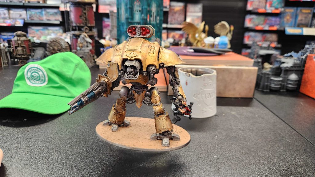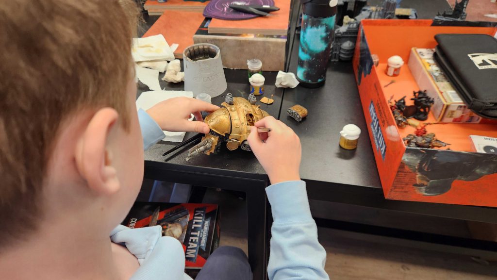 We come back in on Tuesday to do some additional hobby work and Bryce gets some washing and drybrushing done on his knight, plus we get the base covered. He's calling it done now and so Max gives him his stamp for finishing a centrepiece model. I'll make him finish it this week proper, adding a drybrush of bone to the base, plus some plants and a black base rim.