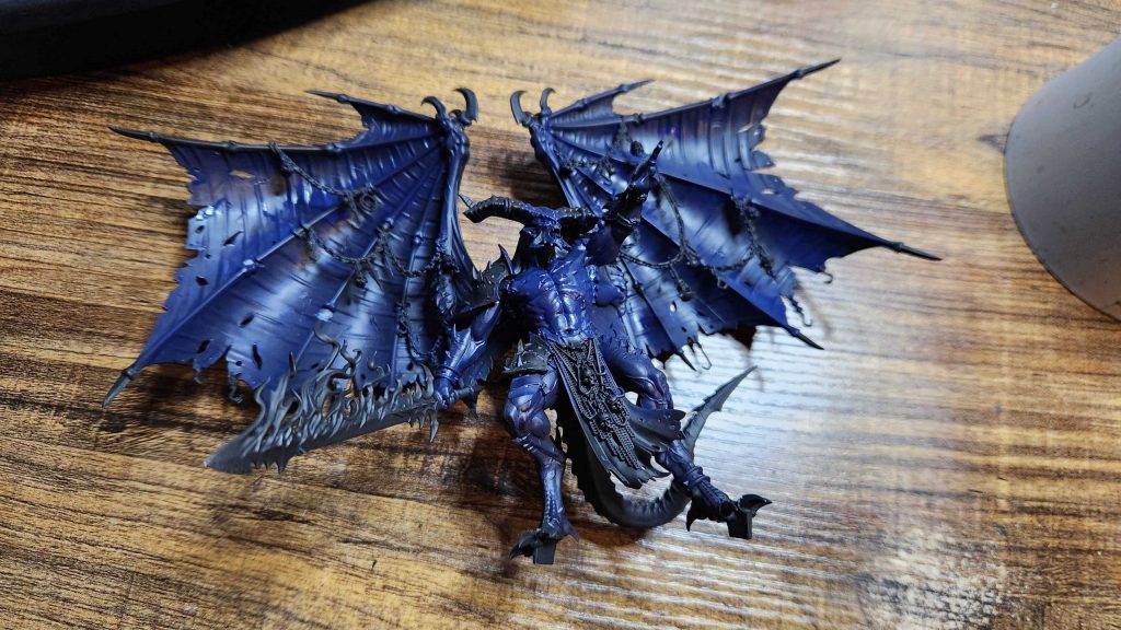 On top of this, I'm also now working to get my Chaos Daemons updated and painted for a Shadow Legion army. I've got quite a bit of work to do on that front, starting with painting Be'lakor. I'm not there yet, but I've started to drop some basecoat on him. This is a little more blue than I'd like - I may want to come back and do more of a purple/gray for his skin.