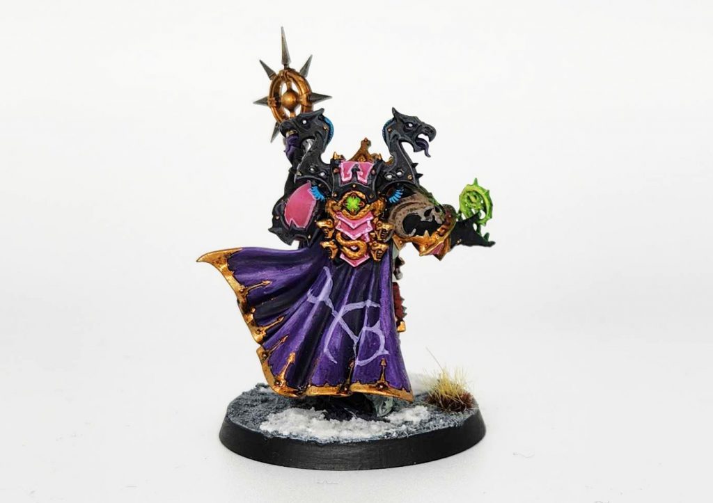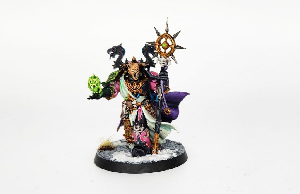I supplemented this guy with an Emperor's Children Sorcerer. I kind of ran out of gas on this model and forced myself to finish it off. I'm not super happy with the result, but I can come back and add more detail and finish him off properly later, so this is good enough for now.