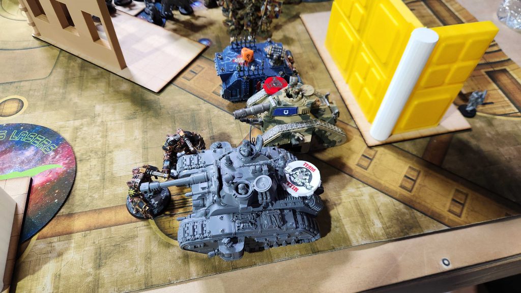 Of course, it's now turn 2 on my end and we're getting into the pressure part. I rapid ingress a unit of Obliterators and drop the other one, and then use them to drop the Dorn to low single-digit wound counts, then charge into it. The Dorn and Russ lived a frustratingly long time as I got them down to something like 1 wound each and they just kind of hung on longer than I expected. That said, my Plague marines put in work up top, while my Chaos Lord and his Legionaries took the brunt of mortar fire before he swept into Connor's deployment zone and started killing mortar units by himself.