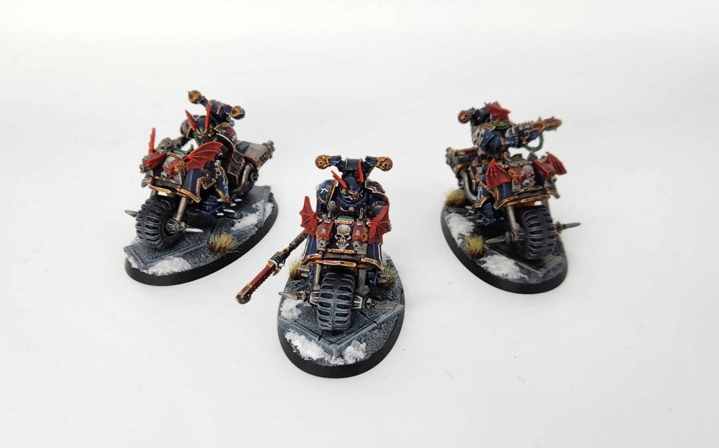 I also considered swapping out the Warp Talons or doing some additional changes here - Bikers are showing up more as a fast cheap action unit with teeth and I have three Night Lords bikes but ultimately I wasn't sold on pulling the Talons. The Talons have that Rapid Ingress and "uppy" appeal and if Bikes could disappear while they were near the table edge I'd have considered them in a heartbeat. As-is, they don't get the benefits of the Detachment as a MOUNTED unit and that's enough for me to sideline them at the moment.