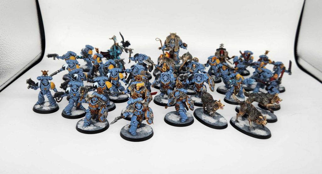 It's all Space Wolves, all the time. About three weeks ago I resolved to paint up all of these models, both for my buddy SD47, and for the