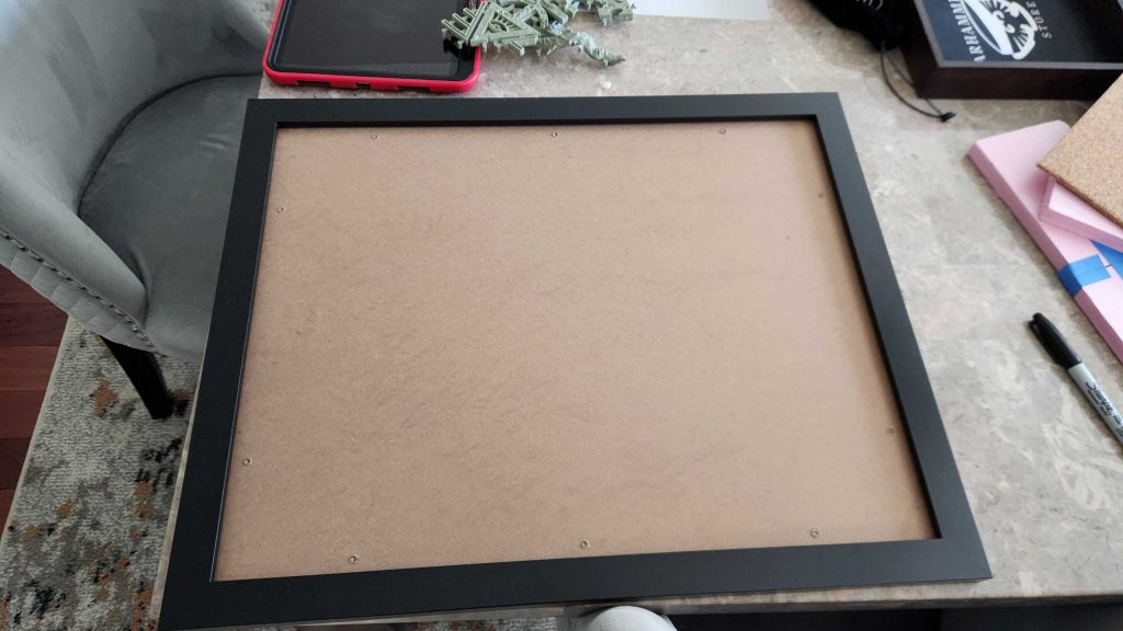My big hobby project - other than actually painting the Emperor's Children I own - is getting the new display board together. This typically starts with a picture frame. I order frames that are 16"x20" as these generally hold an elite army well and fit into my suitcase for transit. The goal here is something that's functional and pretty but also relatively flat and easy to travel with - big display boards are a pain in the ass and I've got to fly to Atlanta, so the primary goal here is something I can put removable pieces on.