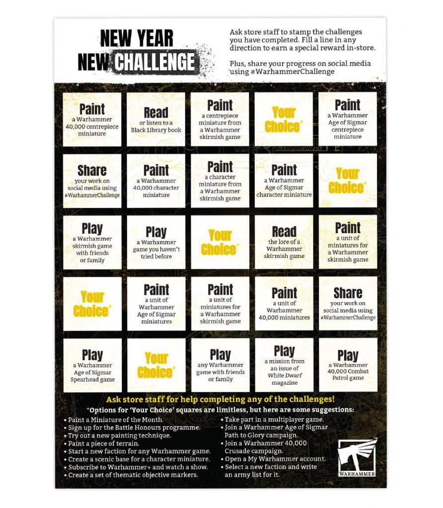 I took Bryce over to the local Warhammer store to pick up some things and while we were there Max "helpfully" told him about 2025 Hobby Bingo. I had been looking for how to take my son through the next step in hobby stuff this year and I'll admit this was a fine way to do that. Based on what he's already done, Bryce and I have decided to do the diagonal on this one, going from top left to bottom right.