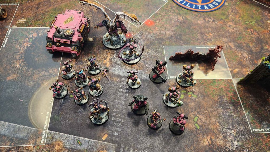 That's a much more manageable list, and while I wasn't playing VotLW earlier this year I was playing most of this army with Creations of Bile. Moving to Veterans isn't a huge lift, and a lot of the same pieces will be there: Bile and his 10-model brick of Chosen in a Rhino, the Obliterators, the Nemesis Claw; I have the pieces I need to work with and at least a passing familiarity with the list.