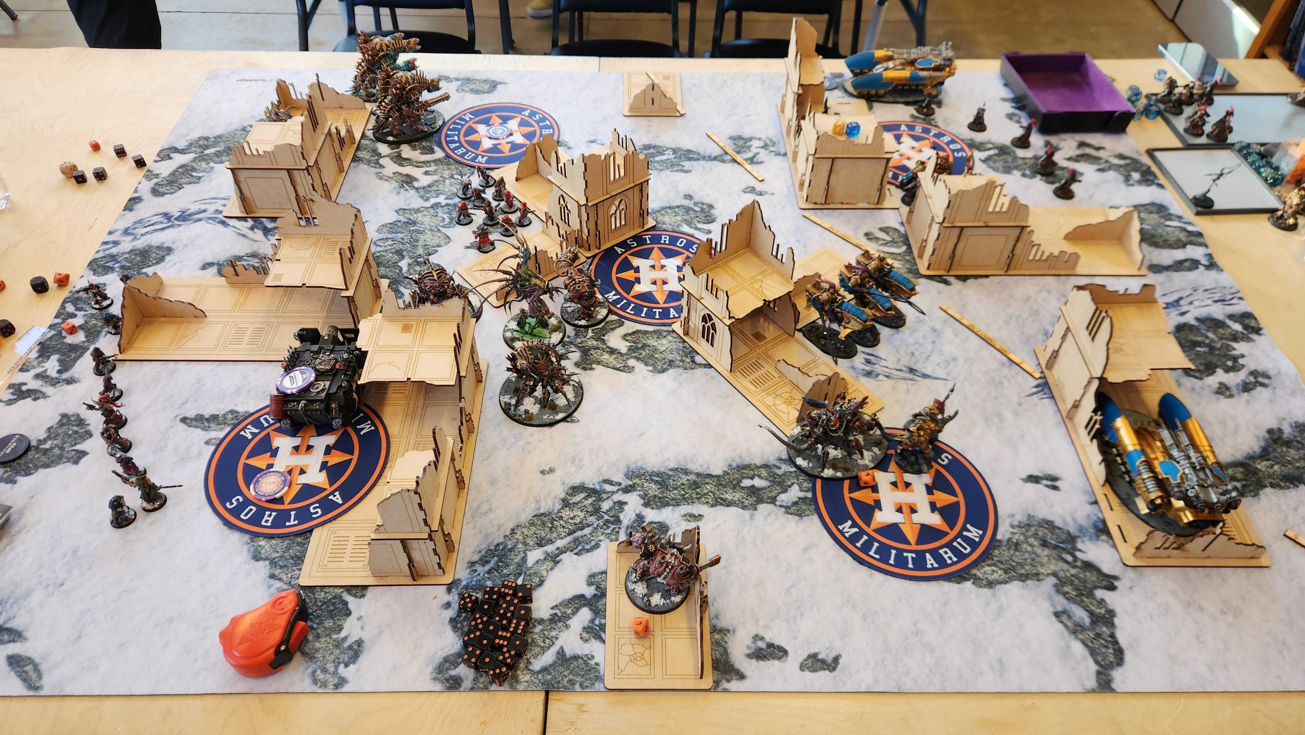 Asgard's a bit of a haul, but at least the construction-based traffic problems have finally died down a bit. We've got 19 players in the event which means three undefeated but given I have zero games with this list under my belt I'm just hoping to go 2-1. Every round was played on Layout 1, which was pretty rough - it's not ideal for my vehicles and I often struggled to get good angles in this event's matchups.