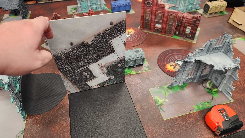 The boards are from the Moon Base Klaisus terrain set/boards, which inexplicably had 33"x22" boards instead of the 30x20 kill team size we use now. It's not worth swapping all of this out, but it's absolutely hilarious that this came up.