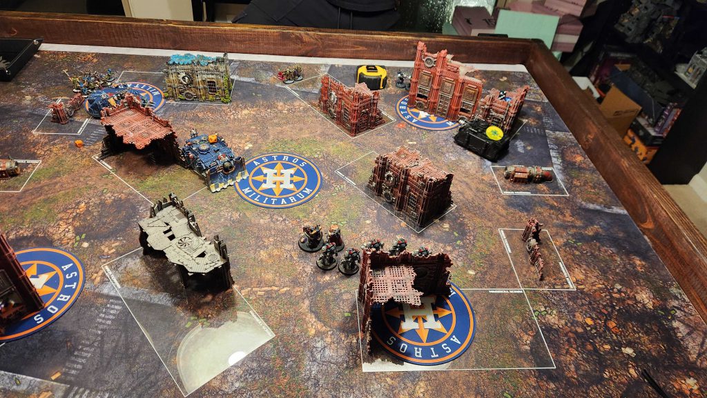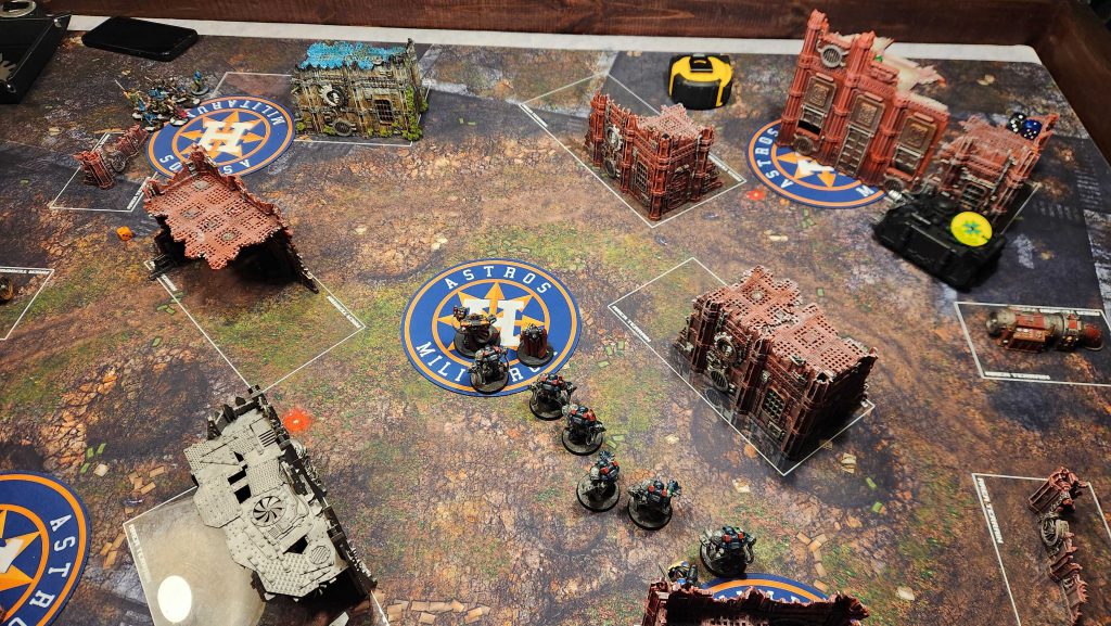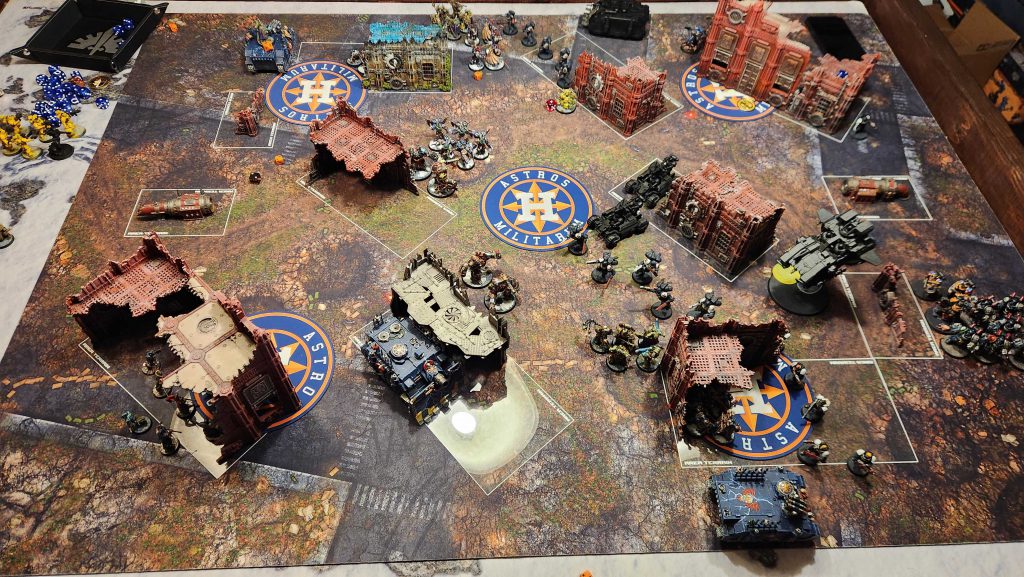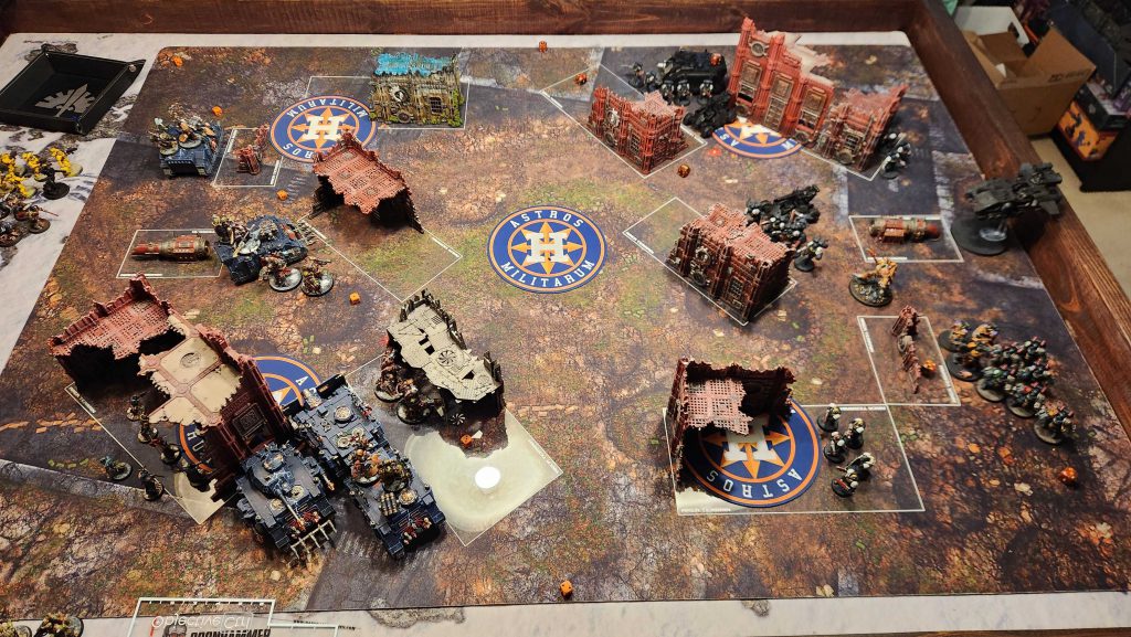 This list is full of headaches for me. Guilliman is one of the bigger ones - he's just a super nasty melee threat and he can fight on death pretty trivially, plus as long he's on the board KC can just point and delete two units per turn at range. My big advantage here is that KC just isn't used to playing his Ultras yet - he's got melee brain and is both not used to playing with a finesse army and also is a bit too cautious of my Vindicator and Predator, opting to keep one of his Vindicators in Strategic Reserves along with Tituis and his unit of Assault Intercessors plus the Incursors.