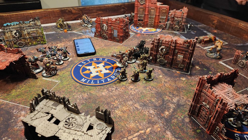 KC's a tough opponent and I definitely benefitted huge from him being less familiar with Ultras. That bad Guilliman luck at mid-table was a huge swing for me, but was offset in my opinion by KC's secondary pulls - I was hoping that by killing his Scouts early I could keep him off up/down shenanigans and cost him some scoring, but it never paid off. KC never should have put them up into combat, instead just pulling them back and off the table and using his Aggressors to wipe out my Nemesis Claw unit.