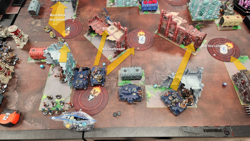 Ryan's a great opponent and that was my first time playing him. He put up a hell of a fight and I made a few key mistakes that nearly cost me that game. The big one was just underestimating how good Goliaths are in melee - at one point I consolidated into one with Plague Marines thinking they'd survive it and hoo boy they absolutely did not. The other was that Warp Talons charge - that one went bad due to dice but in retrospect losing two models wasn't an unlikely outcome. I'd have been better off putting the Talons elsewhere.