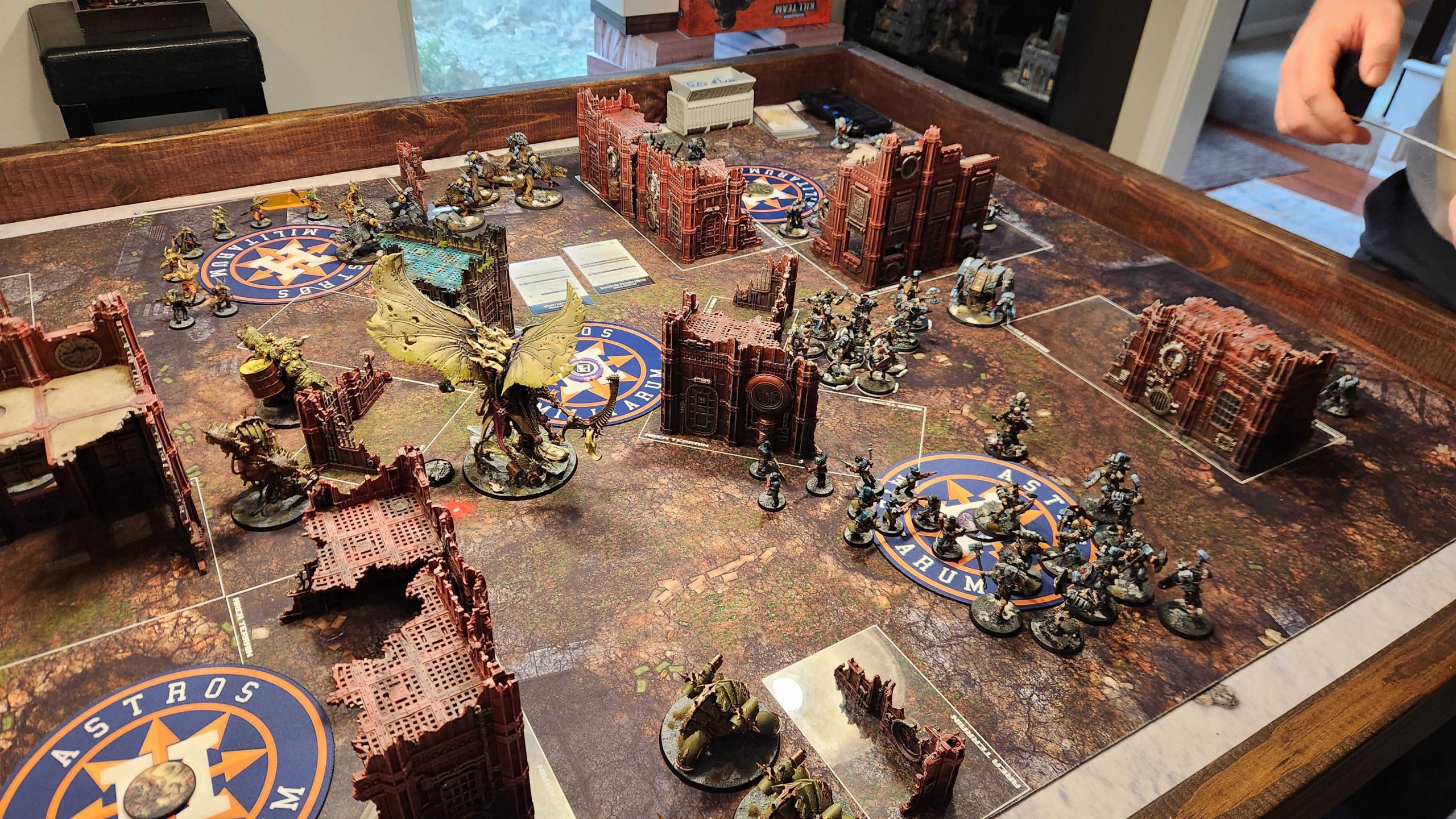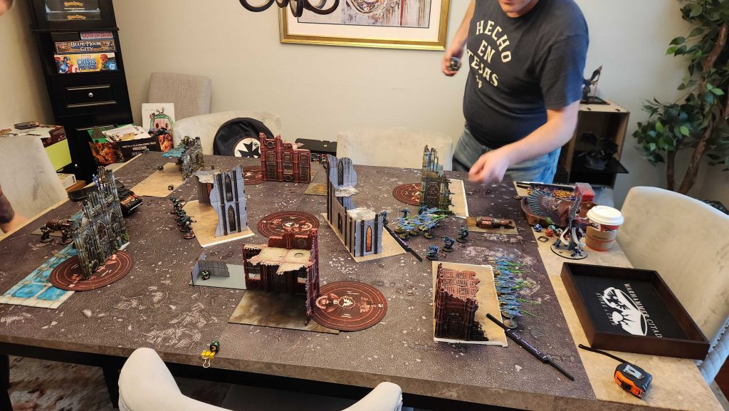 We did a team practice day last Sunday. This is mostly just a couple of games happening concurrently. Ideally we'd have done two rounds but on Sundays I usually want people out of the house in time for dinner so we just did one and either way both were good. David needed a rep into Victrix Ultramarines and I just wanted any reps with Vectorium.