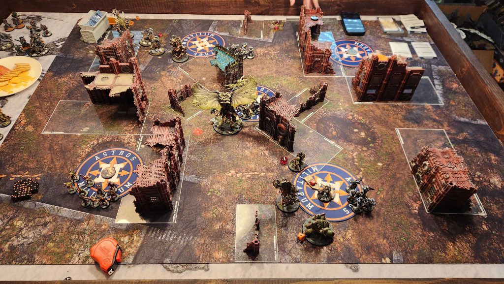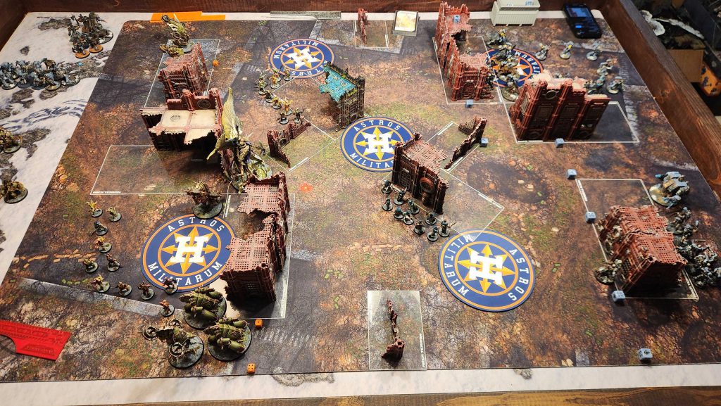 This is just a bad matchup for Garrett, and not having shooting means that Mortarion can roam around the board freely and dominate the center. I mostly keep him off the objective to avoid the Lieutenant's ability but he easily picks up his cost in Terminators over the course of the game.