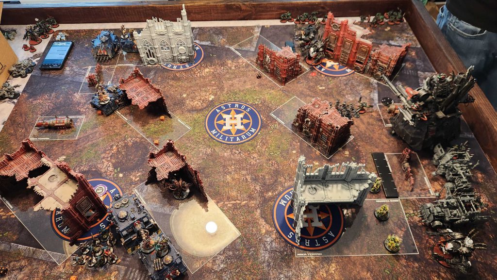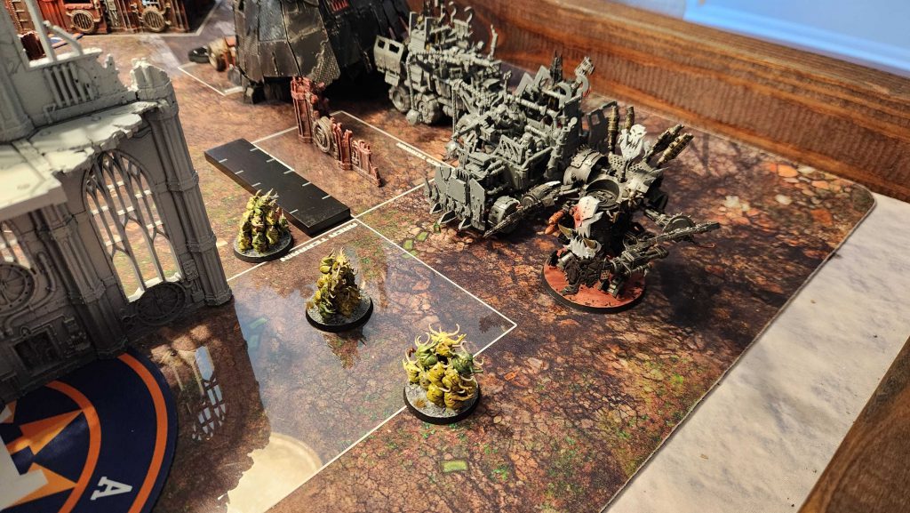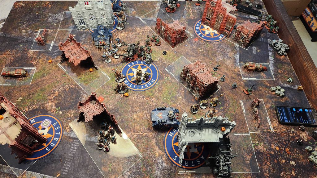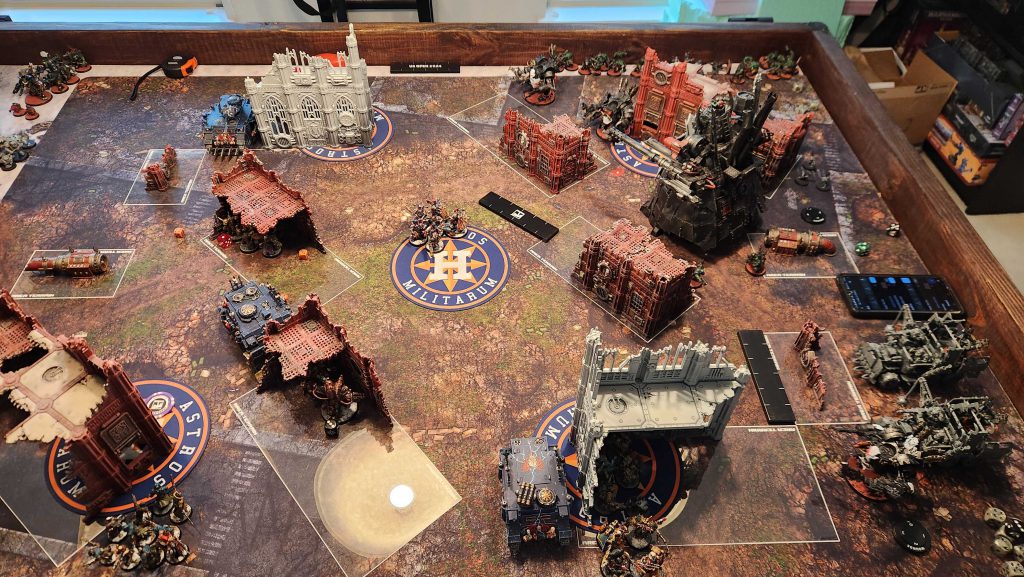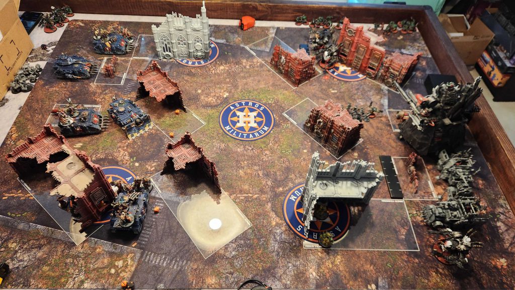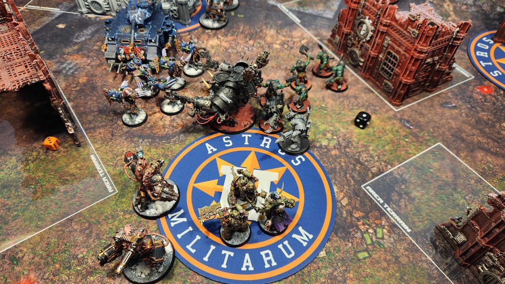 Like I said, low on units but big on tough threats. If I get into melee with a bunch of Deff Dreads, I'm going to bounce off and then eat shit unless they're low on wounds before I go in. The general combination of T9+ and a 2+ save are generally a bad deal for me. Likewise, the Stompa is an issue - I don't really have many solutions for a T14 threat, save potentially using Lethal Hits on more of my units. And using Lethal Hits on Lascannons feels pretty bad. My real plan is to try and whittle it down a bit, then go to town on it with the 4-damage Chaos Lord.