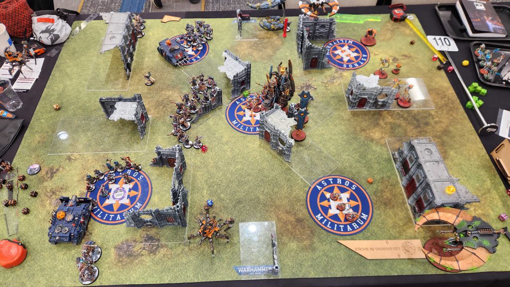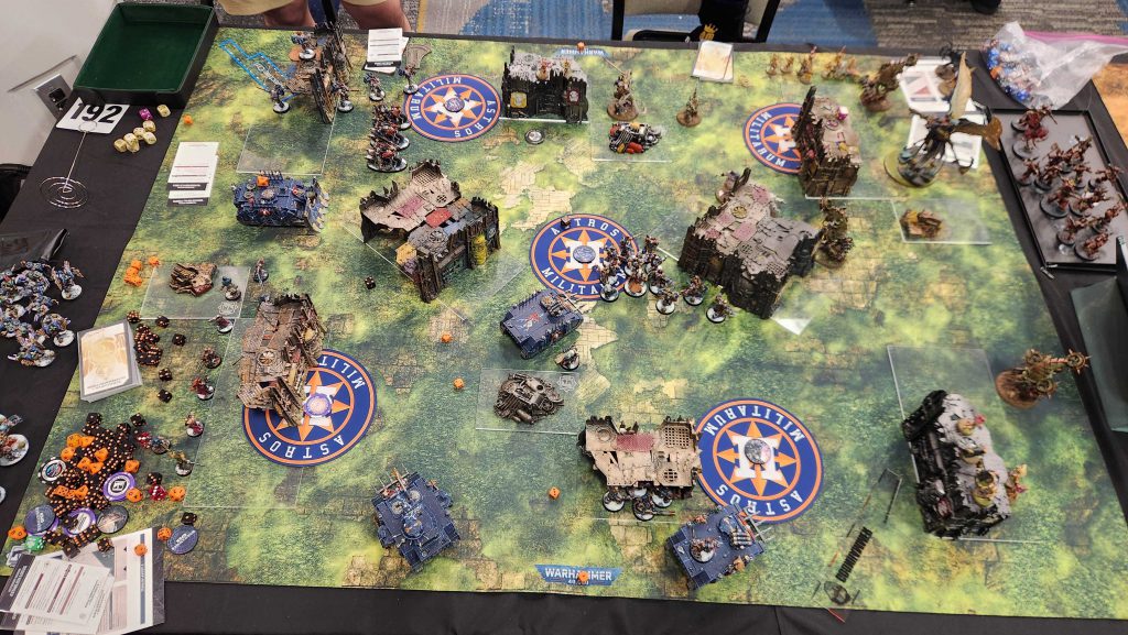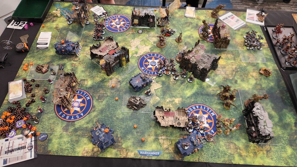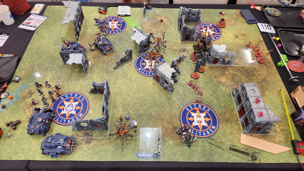 What a trip. I have many thoughts, which makes boiling them down tough. Overall I had a great time, and my opponents ranged from "very pleasant" to "a blast to play and interact with." My games were mostly good, though my gripes were more with terrain and layouts than the games themselves - the missions at WCW this year were an absolutely baffling mix of layouts and deployment maps, and had some particularly heinous choices. It's a weird thing to have your year's biggest event have some of its worst missions. On that note, the terrain was also a bit of a miss - most of the tables I played on had the wrong Ls or overhung their area bases, which is just bush league.