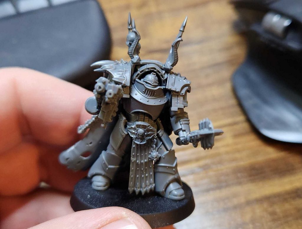 I have hobby progress to report! I’m currently working on some stuff I won’t be able to talk about for another few weeks, but I can show off the most recent secret stuff I did - I’ve been working with the new Cataphractii models from Horus Heresy, making them into some more modern Iron Warriors terminators. I don’t care for the tiny little power fists on the new Cataphractii but the new models are cool otherwise, so I’m swapping out their fists for big Chaosy fists I have laying around from the old 2005 plastic Chaos Terminators.