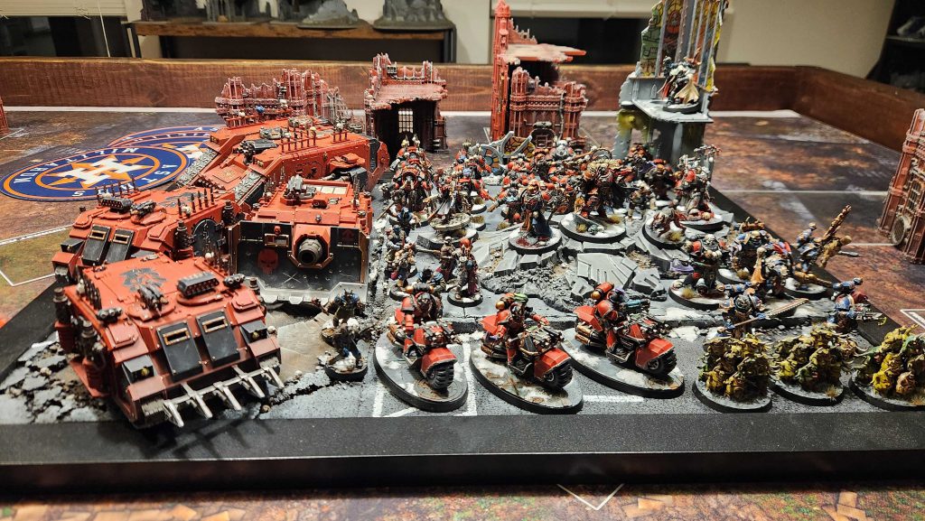 I'd end up taking some of the old Red Corsairs marines I'd painted with me just to fill out the ranks. That's not ideal but I just couldn't finish everyone in time. My plan is to grab another box or two of the Raiders and a couple upgrade kits when they're finally released, just to round out this force. I don't have a ton I want to add to it, but I do want to have more Legionaries, Chosen, and Raiders to work with, and I may paint another five Terminators at some point. Oh, and I have to finish the Nemesis Claw.